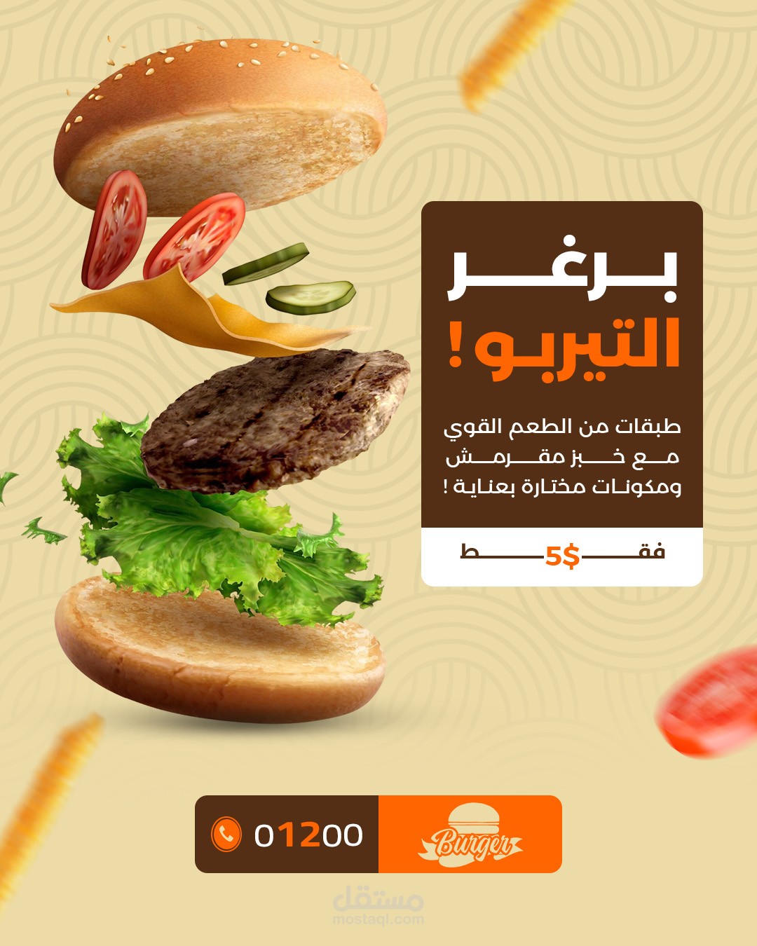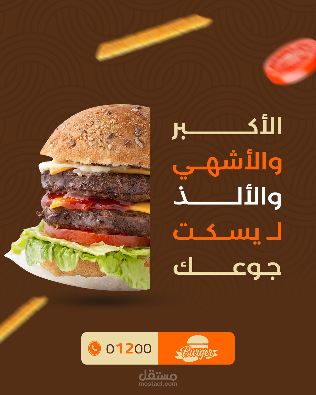 إبراز شخصية مطعم البرجر بأسلوب احترافي وشهي يجذب الزبائن.
