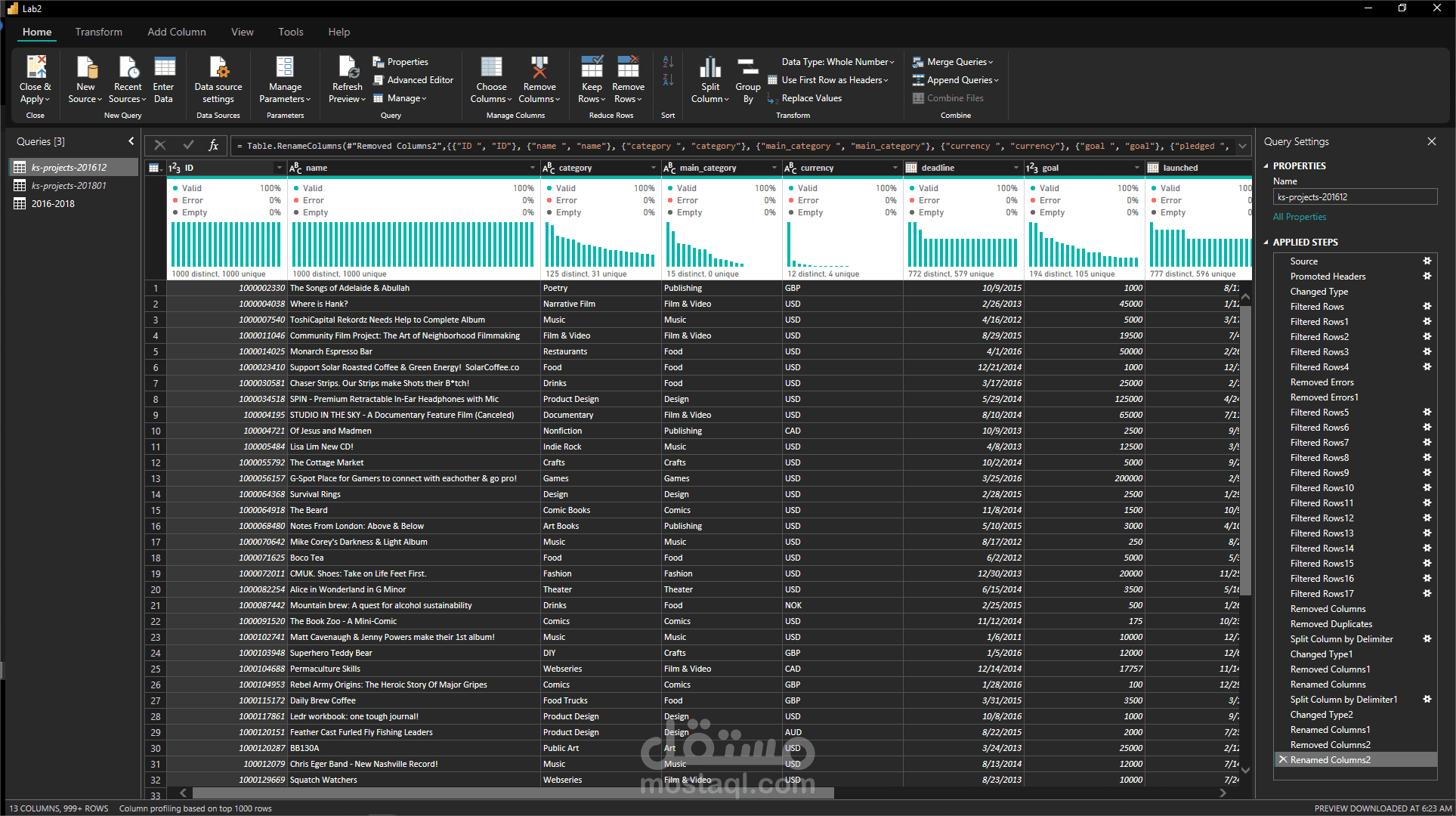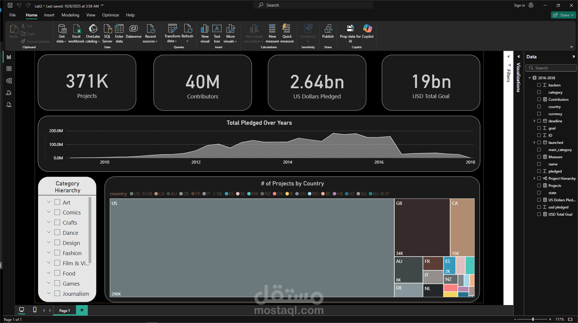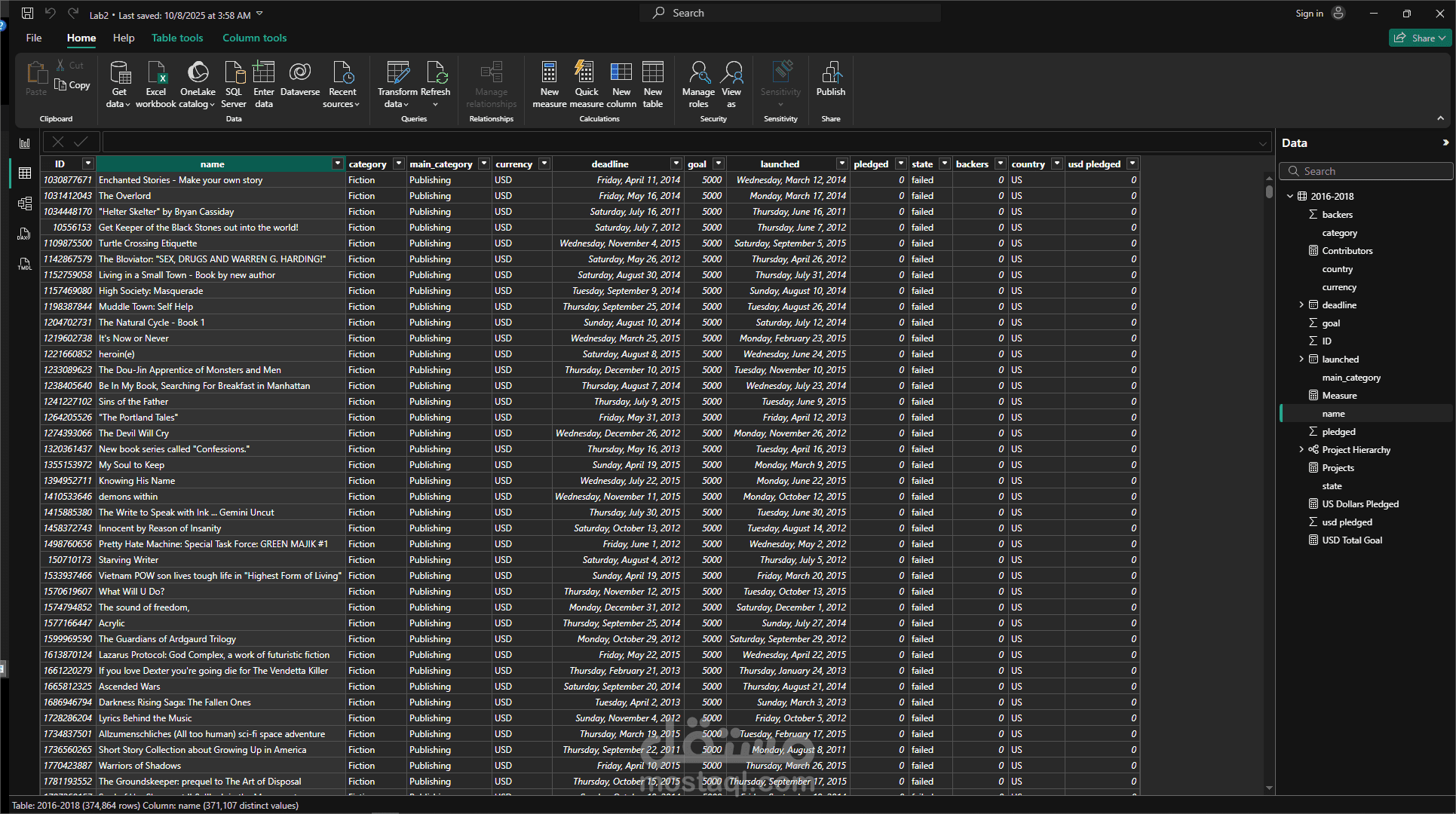في هذا المشروع قمت باستيراد بيانات حملات التبرعات من ملفين CSV بإجمالي 374,864 صف، ثم دمجتها في جدول موحّد بعد تنظيف البيانات وتوحيد الأعمدة وحذف القيم المكررة باستخدام DAX.