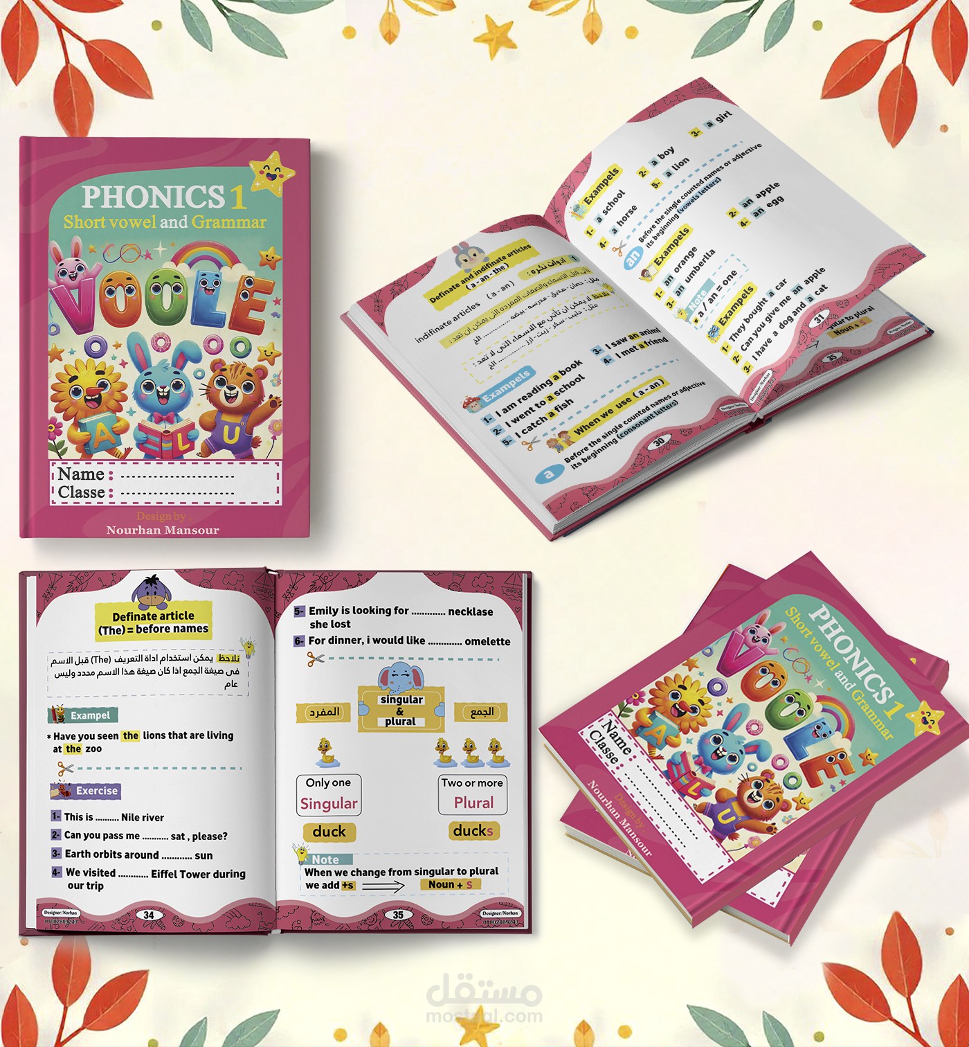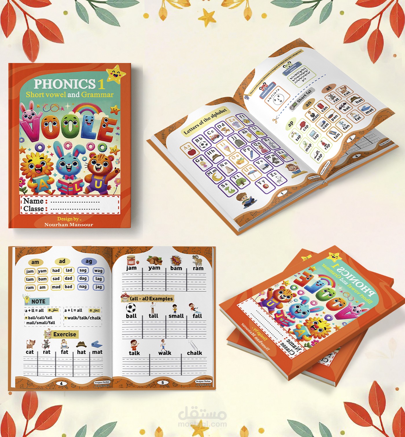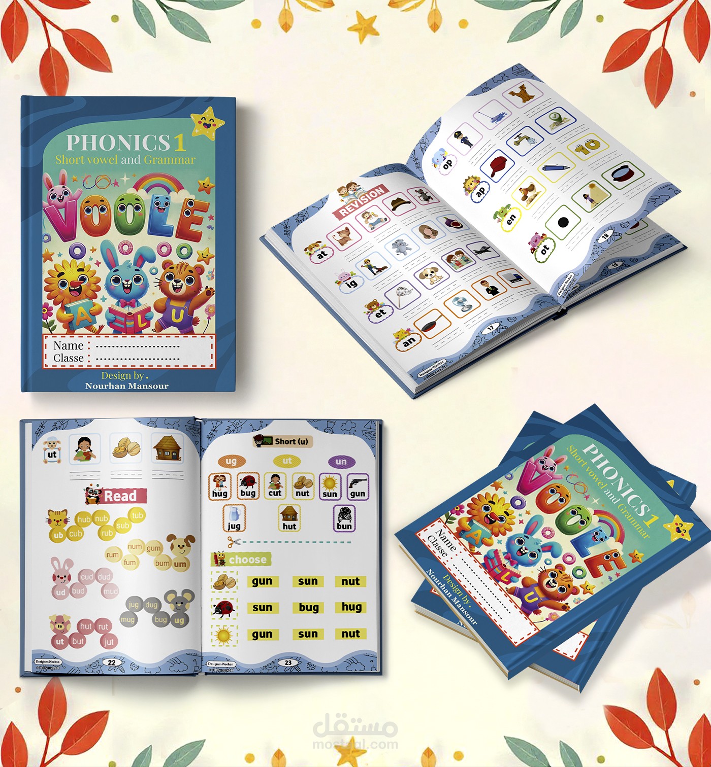“Phonics 1: Short Vowel and Grammar” is an engaging educational book that I designed to help young learners master short vowel sounds and basic grammar concepts.