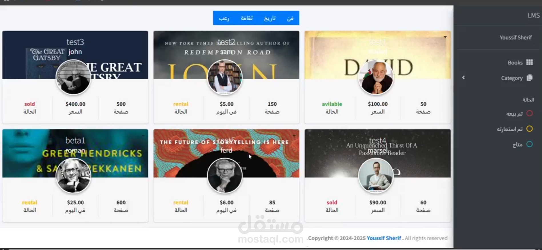 موقع إلكتروني نظام اداره مكتبه متاح اضافه كتاب و حذف كتاب و تعديل الكتاب و اضافه صوره للكتاب و اسم المؤلف و صورته