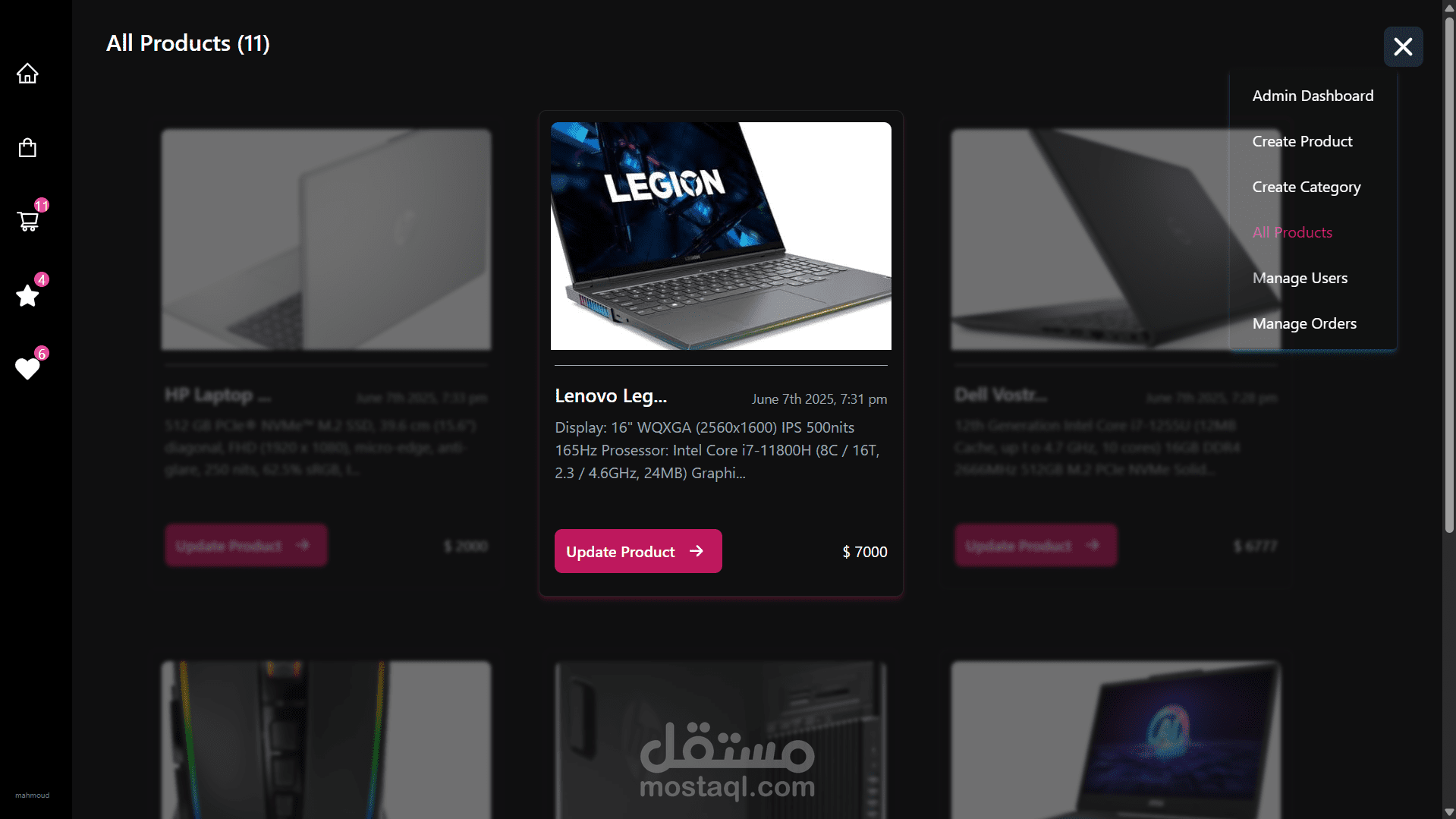 This is a full stack project that represents an e-commerce store that you can buy from and sell your products and this project had been built in React.js, TailwindCSS, RadixUi and other tools for front end
