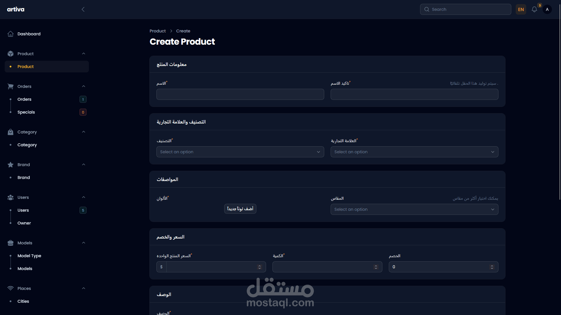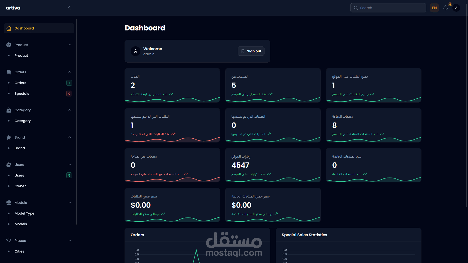 تصميم داش بورد