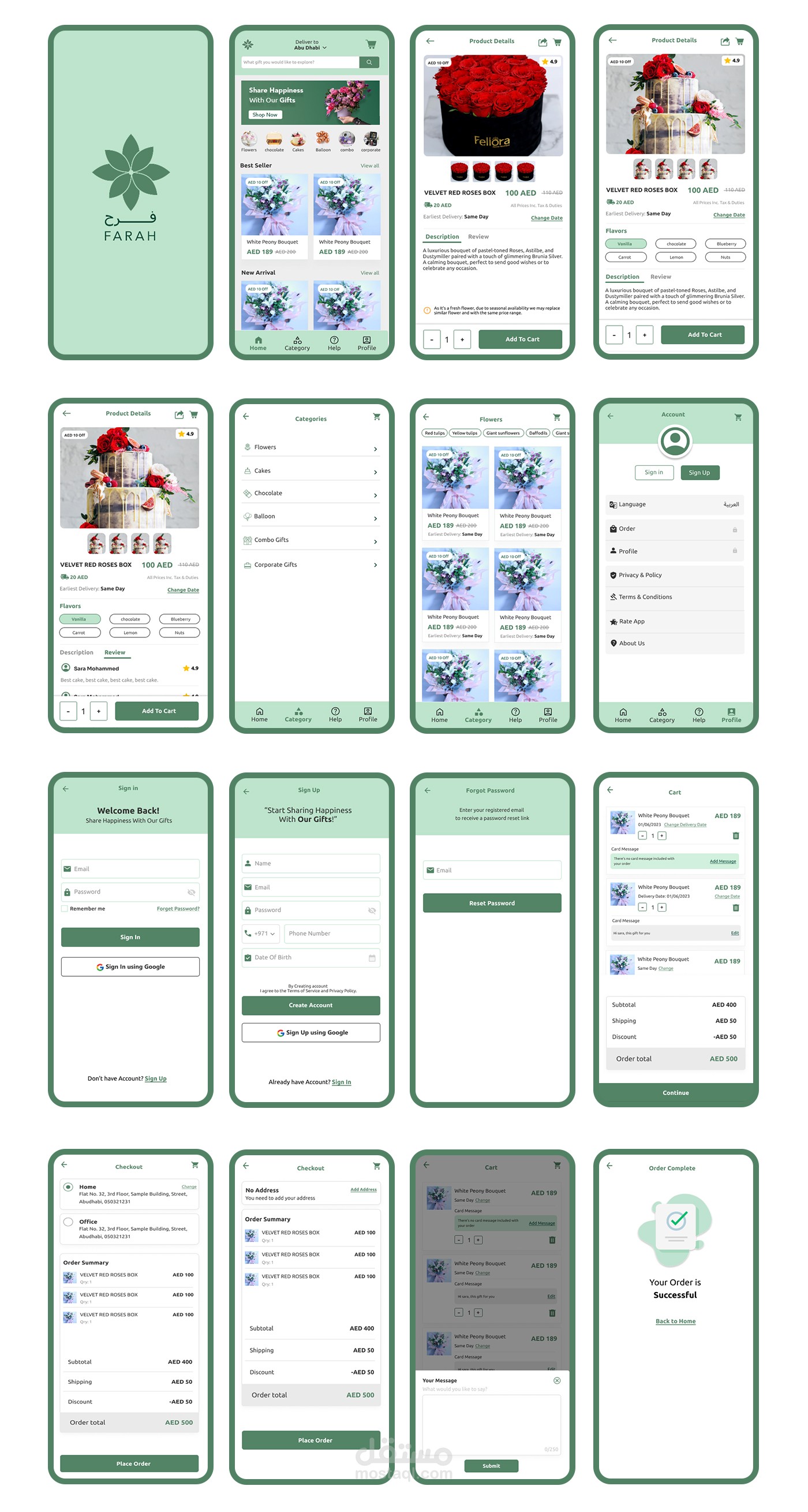 تصميم واجهات المستخدم لتطبيق فرح وهو متجر هدايا اون لاين فى الامارات