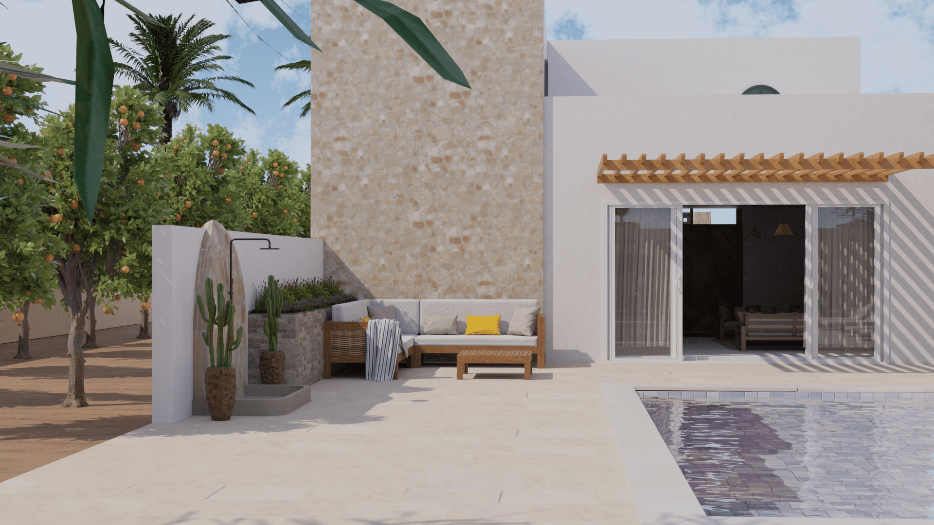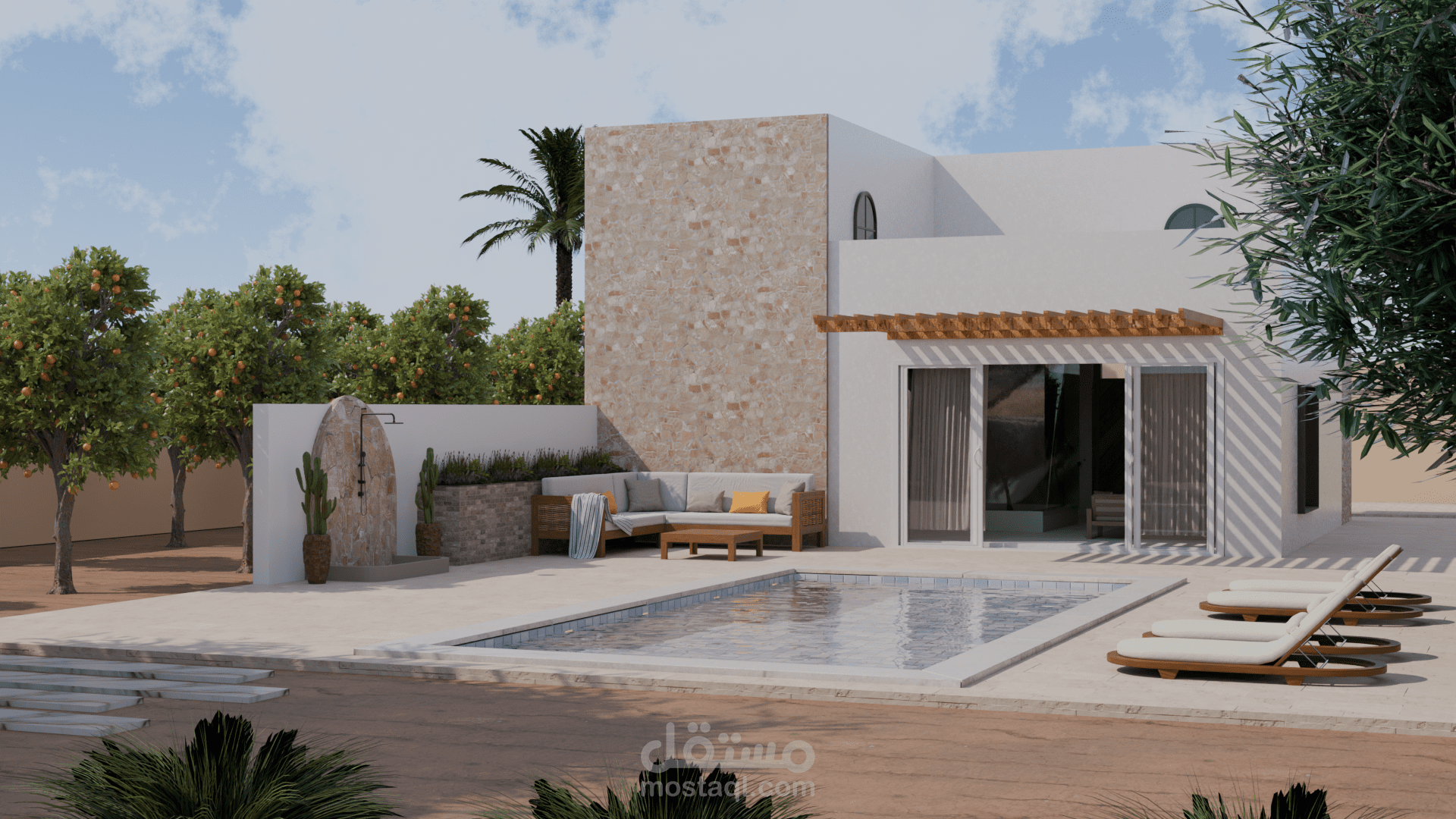مشروع تصميم متكامل (Landscape Design + Facade Design + Outdoor Design) لفيلا متوسطية فاخرة تقع ضمن محيط زراعي خلاب في تونس. يركز هذا التصميم على دمج العمارة الحديثة مع الخصائص الطبيعية للموقع، حيث تحيط بالفيلا مزرعة مُنتجة تضم أشجار الزيتون المعمرة، والبرتقال، والتفاح. تم التخطيط بعناية لإنشاء مساحات خارجية وظيفية وجذابة، تتوسطها بركة سباحة (Pool) تشكل نقطة محورية للترفيه والاسترخاء. تم استخدام حزمة الأدوات المتخصصة (شاملة AutoCAD, SketchUp, وBlender) لضمان دقة التنفيذ المعماري وإخراج تصميمات ثلاثية الأبعاد واقعية (3D realistic renders) تُظهر بوضوح الانسجام بين التصميم والبنية البيئية المحيطة، ما يضمن تحقيق قيمة جمالية وعملية فائقة.