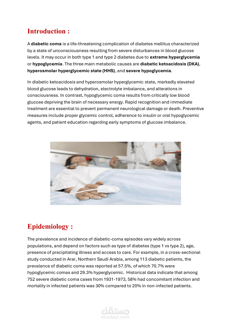 بحث علمي عن diabetic coma تم جمع المعلومات من googel scholar وتم الكتابة على word