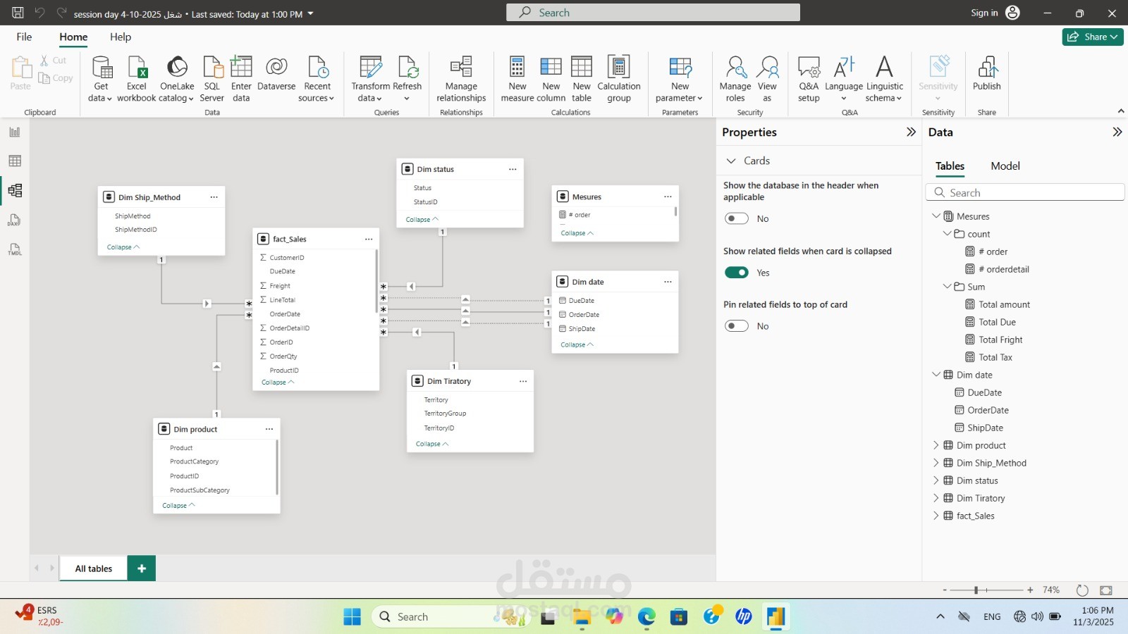 Define key measures (KPIs) using DAX formulas.