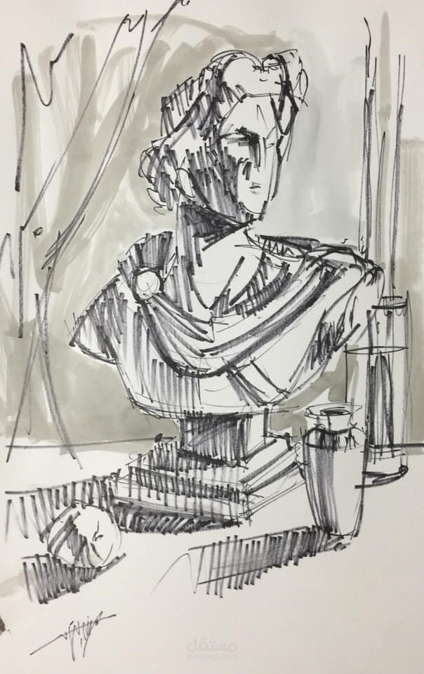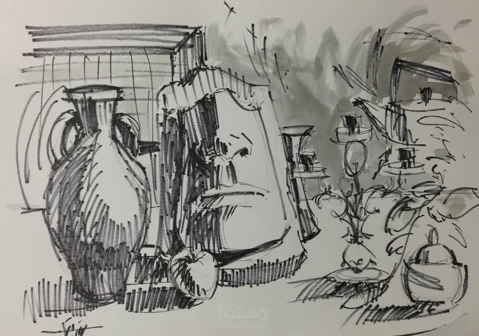اسكتشات خطيه سريعه منها بالقلم الماركر و منها الحبر و منها الخط الواحد