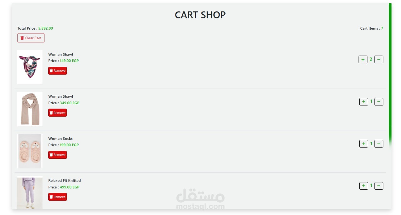 نظام سلة التسوق (Shopping Cart) مع إضافة وحذف المنتجات