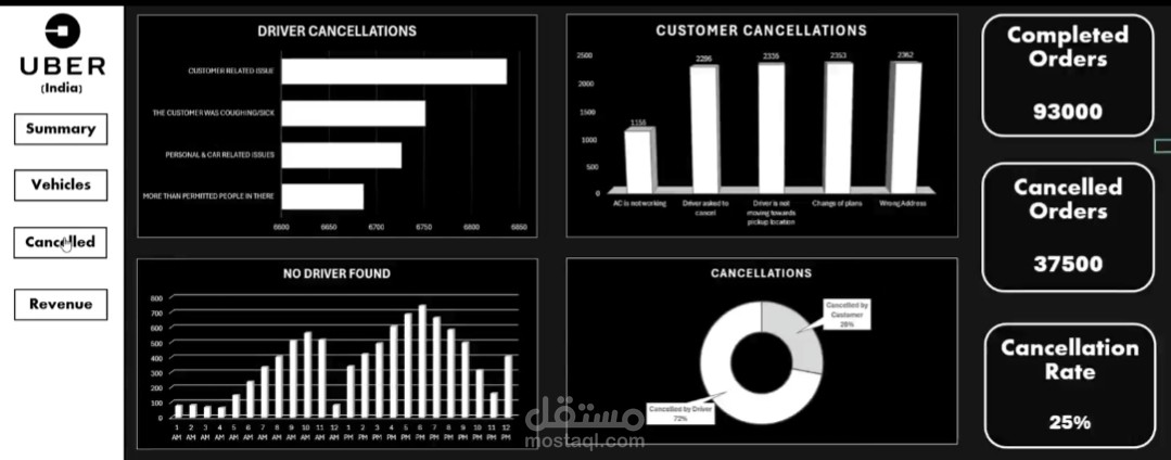 أقدم لكم مشروعي لتحليل بيانات تطبيق الركاب (Ride-hailing) مثل Uber أو مثيله، يضم: