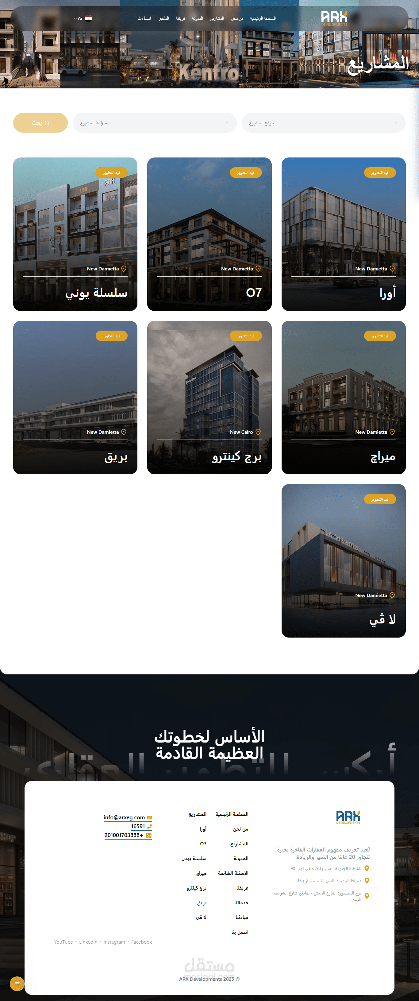 قمت بتطوير وتصميم الموقع الرسمي لشركة ARX Development، وهي شركة تطوير عقاري رائدة في مصر تمتلك خبرة تمتد لأكثر من 20 عامًا في تنفيذ المشروعات السكنية والتجارية والإدارية والطبية والفندقية.