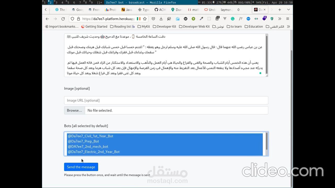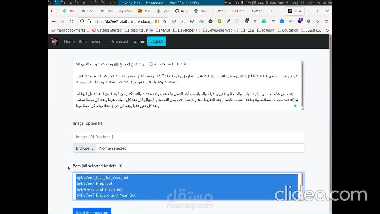 لوحة تحكم لإجراء عمليات النشر وإرسال الرسائل لبوتات الدحيح على التيليجرام وإرسال رسائل في أوقات محددة في اليوم لأكثر من بوت دون تدخل بشري.