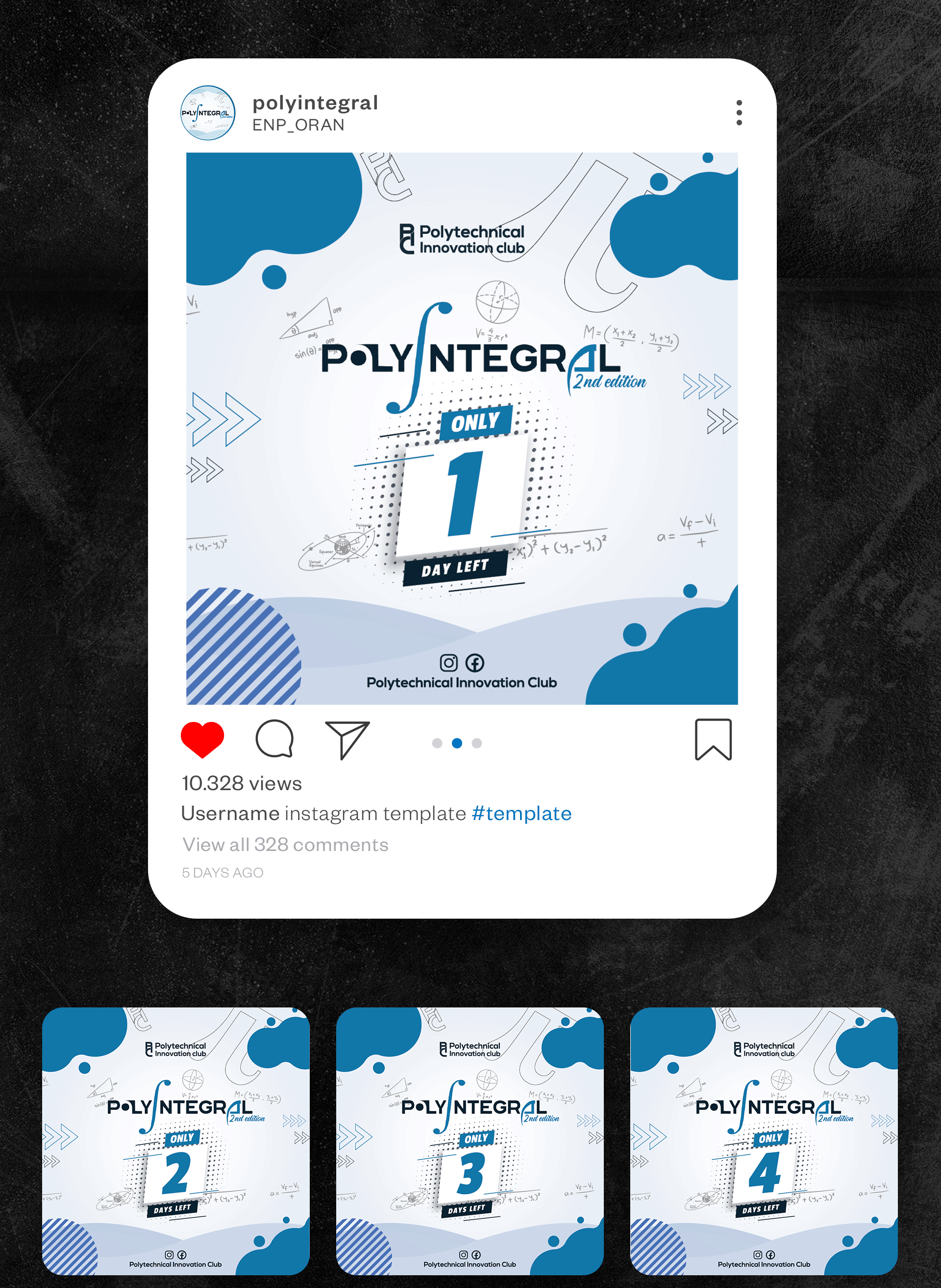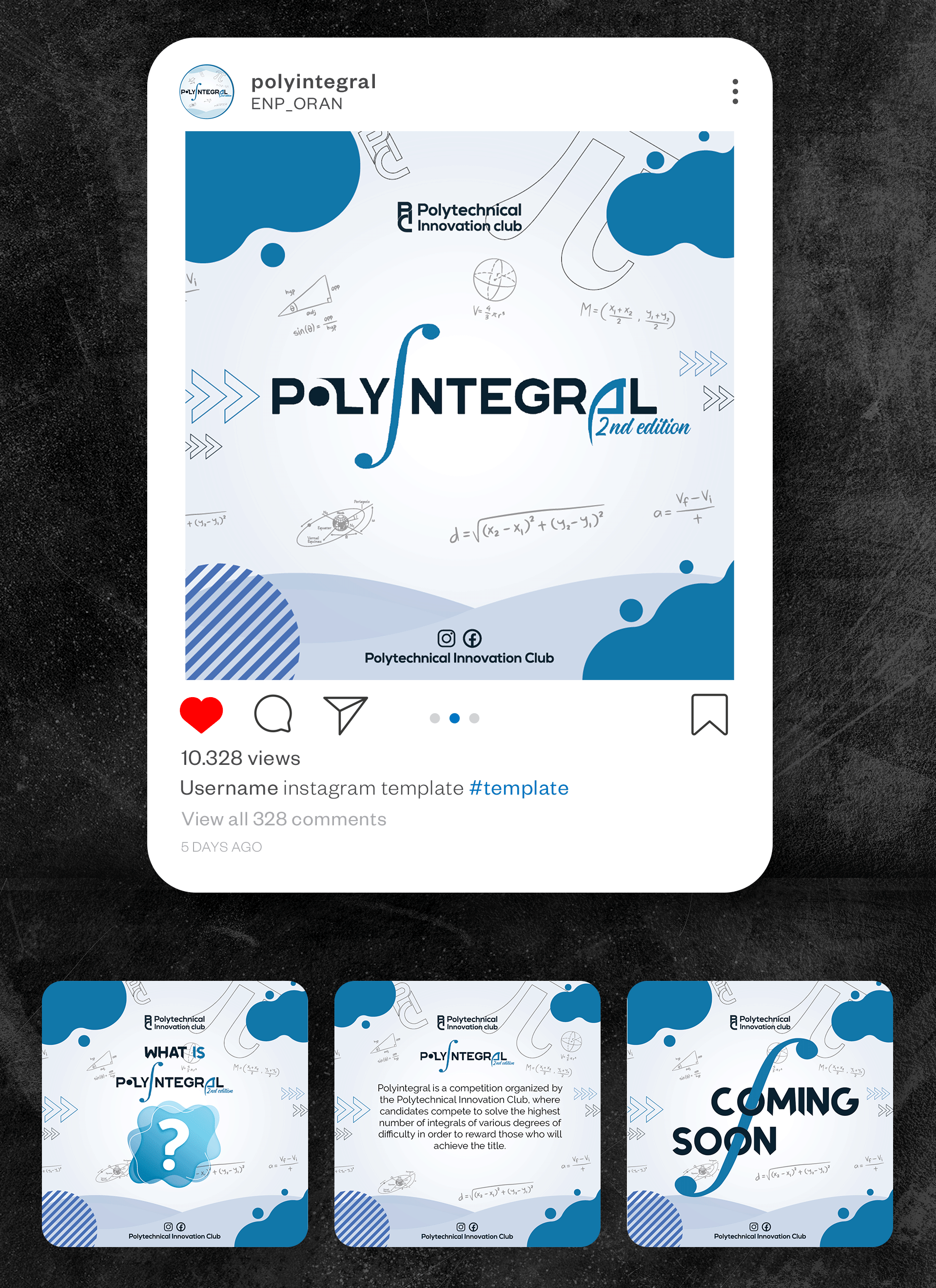 Design of a series of social media visuals for the Polyintegral competition organized by the Polytechnical Innovation Club.
