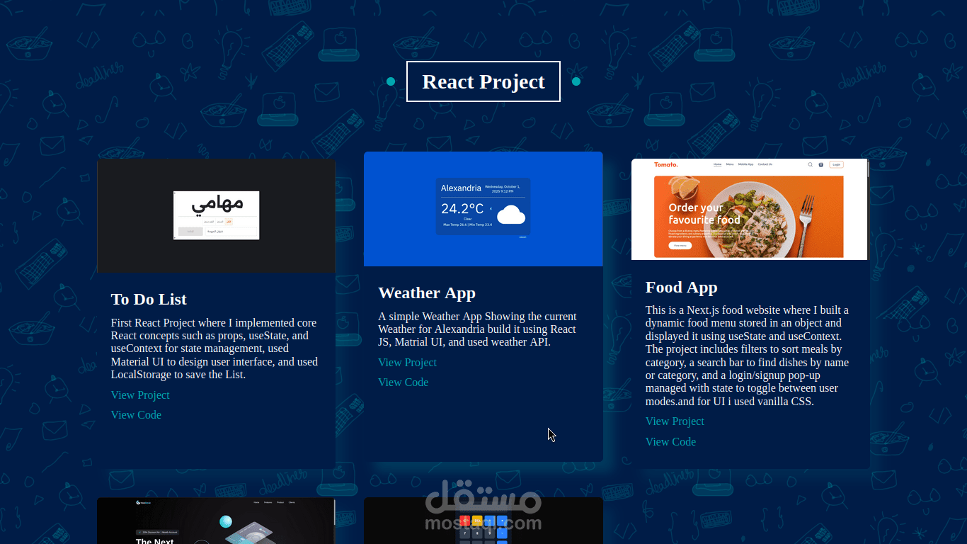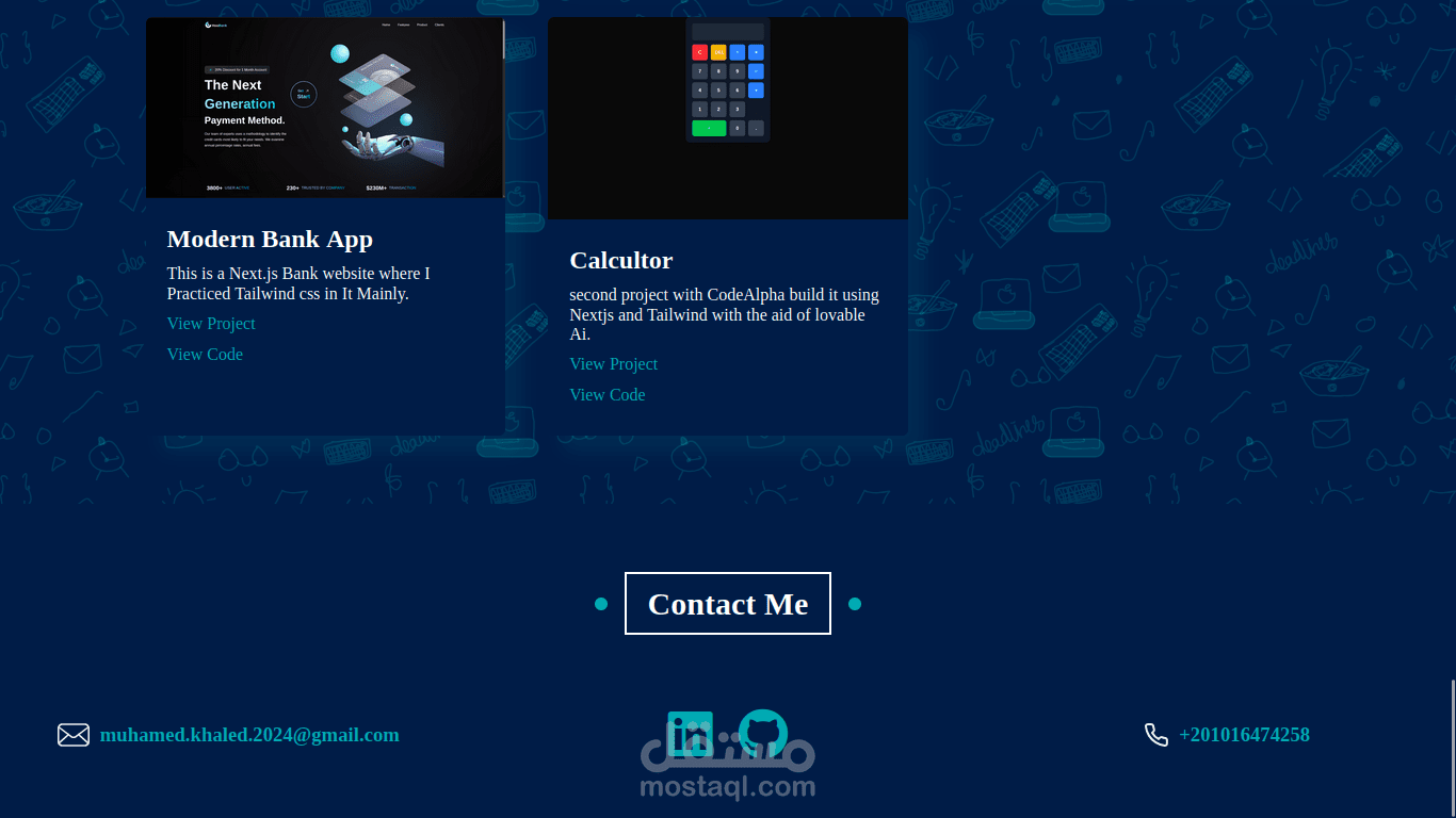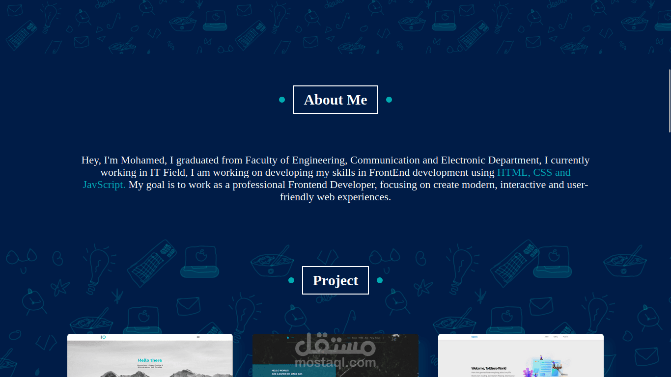 موقع شخصي باستخدام HTML-CSS-JavaScript، يحتوي على Home-About-Projects-Contact