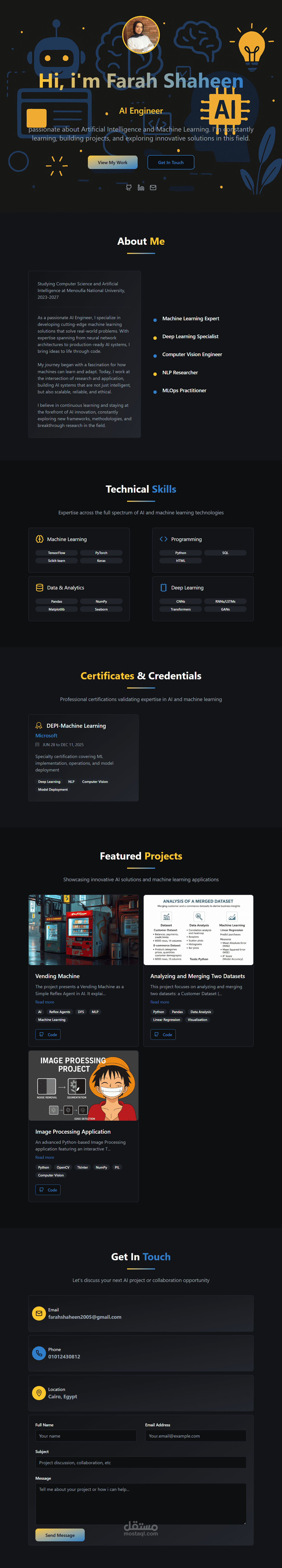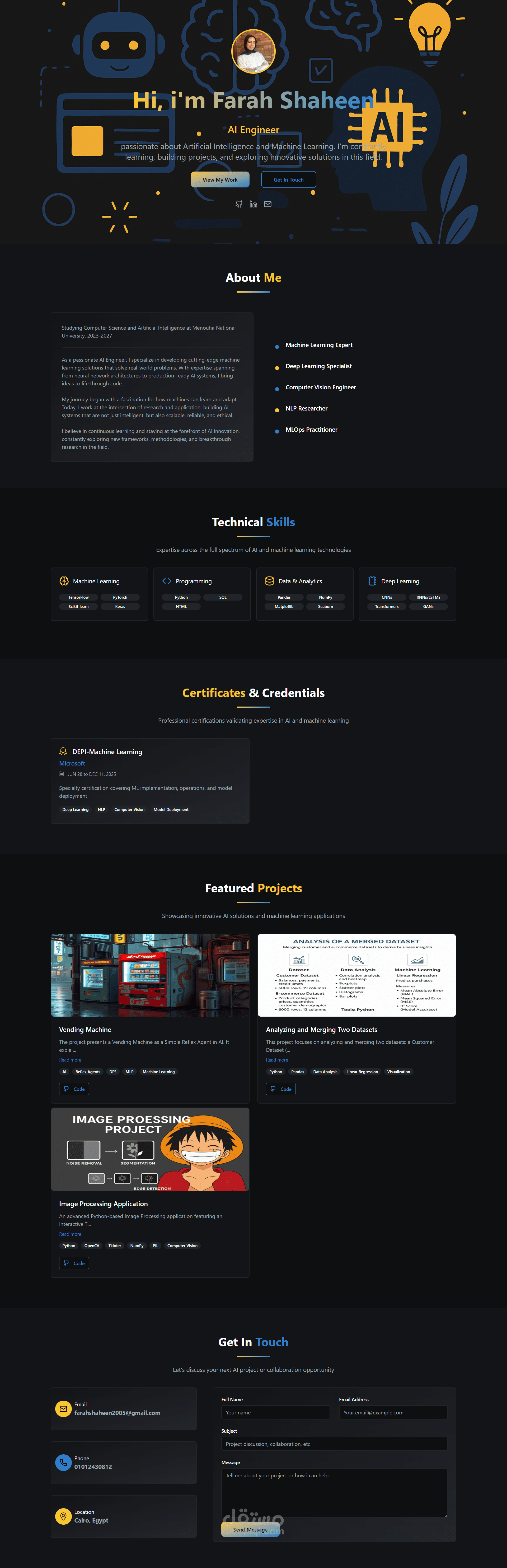 بناء مشروع كامل ل portfolio ، تم استخدام مكتبة React js و tailwind CSS لعمل styling للمشروع.