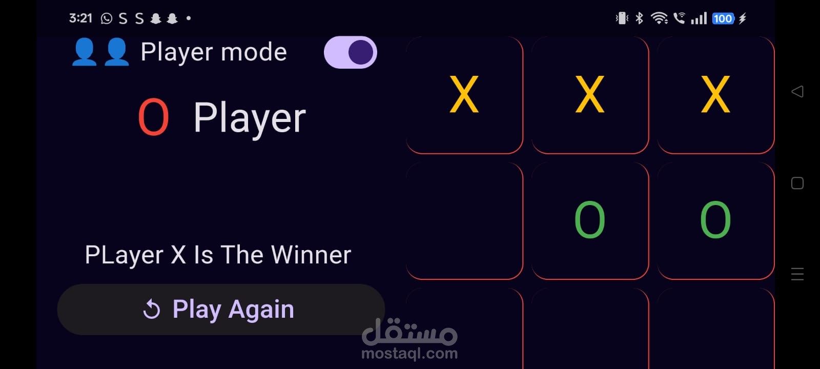 تطبيق Tic Tac Toe هو لعبة ترفيهية بسيطة تم تطويرها باستخدام Flutter، وتتيح للمستخدمين اللعب بطريقتين: وضع لاعبين (Player vs Player) أو وضع لاعب ضد الكمبيوتر (Player vs Computer).