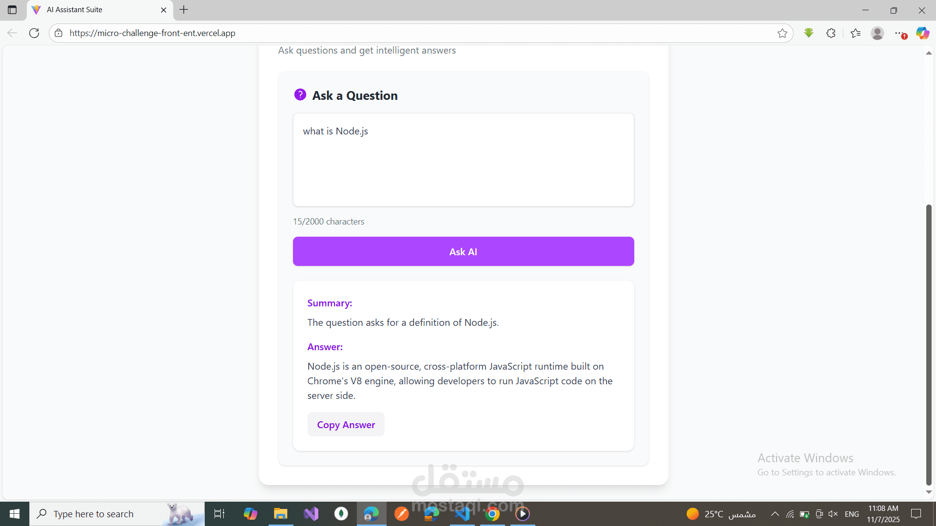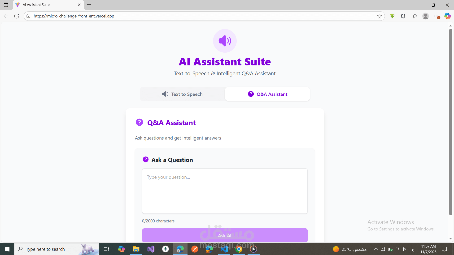 مساعد ذكي للإجابة عن الأسئلة، حيث يمكن للمستخدم: