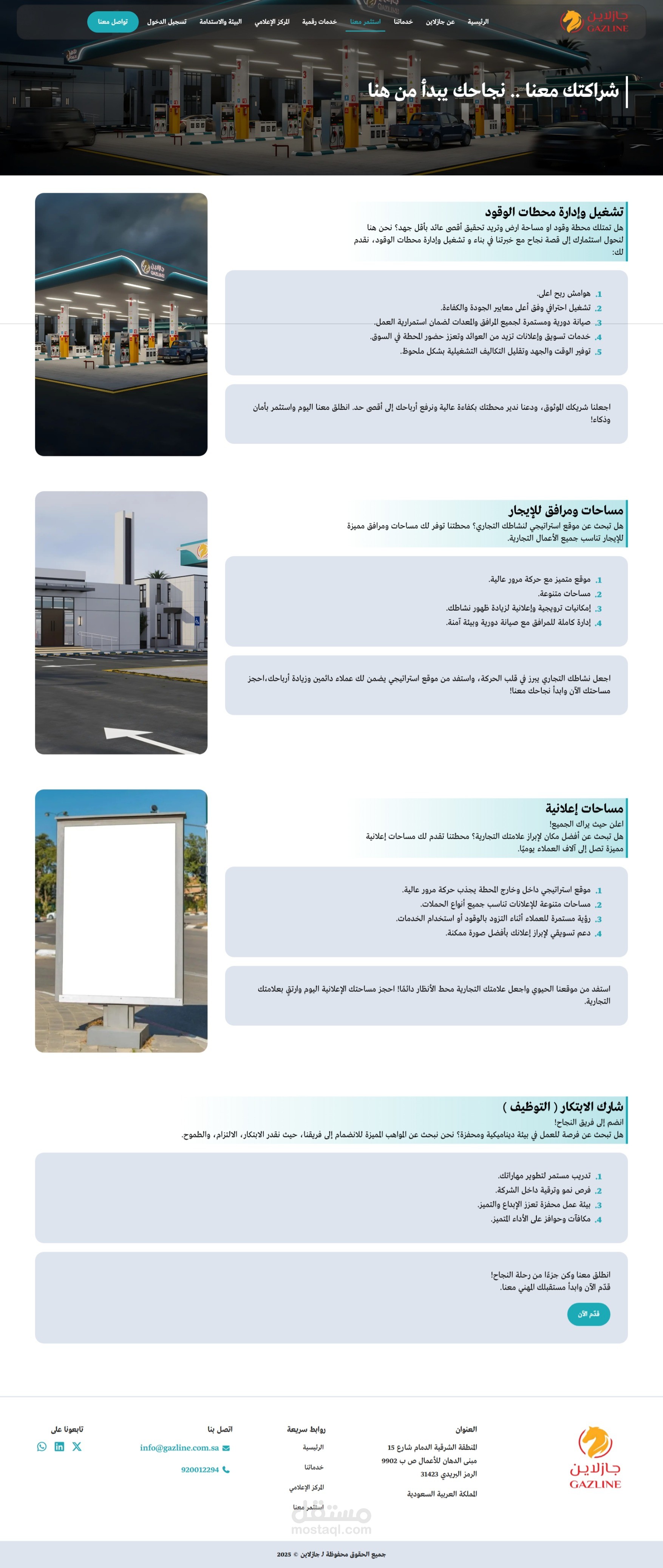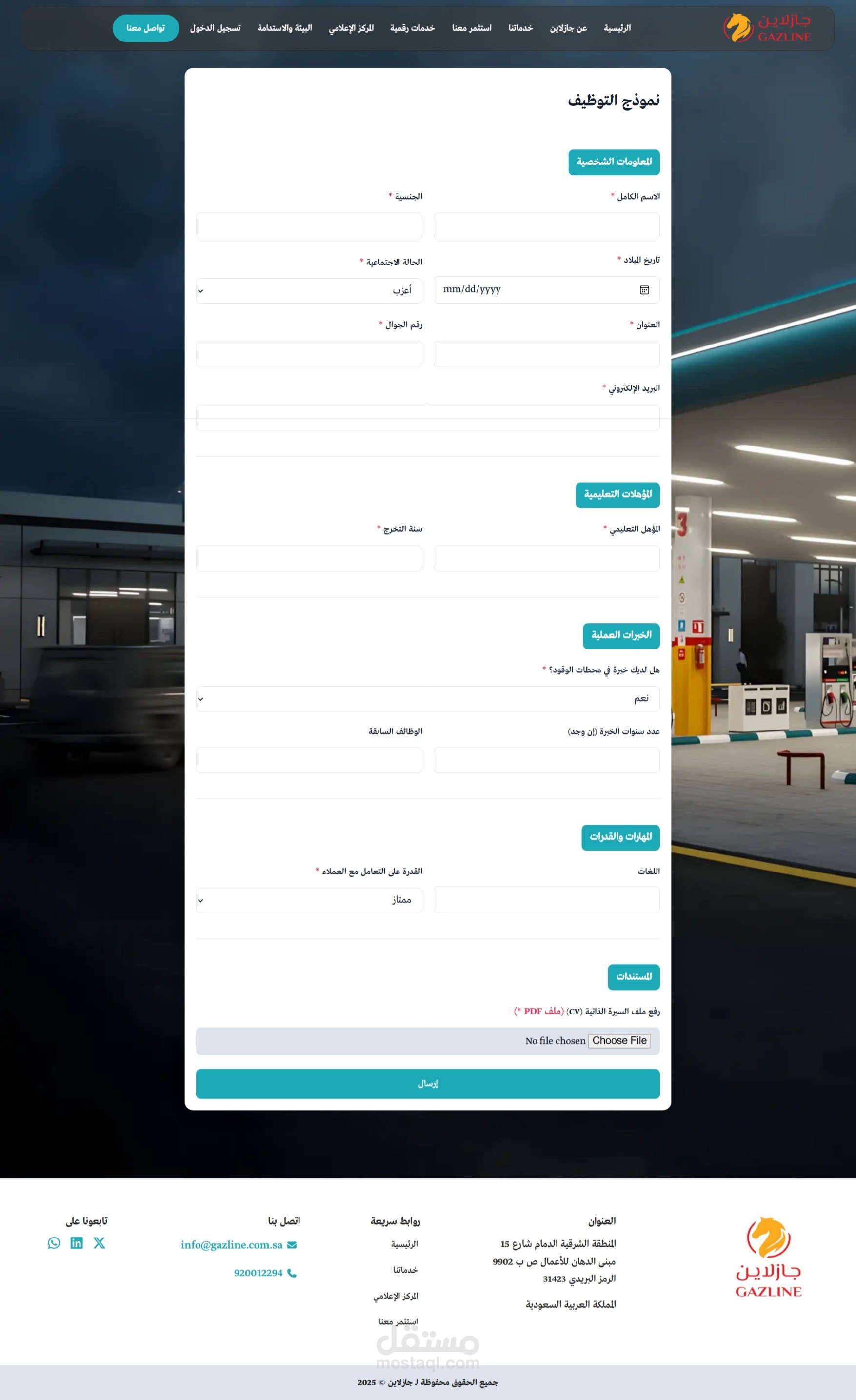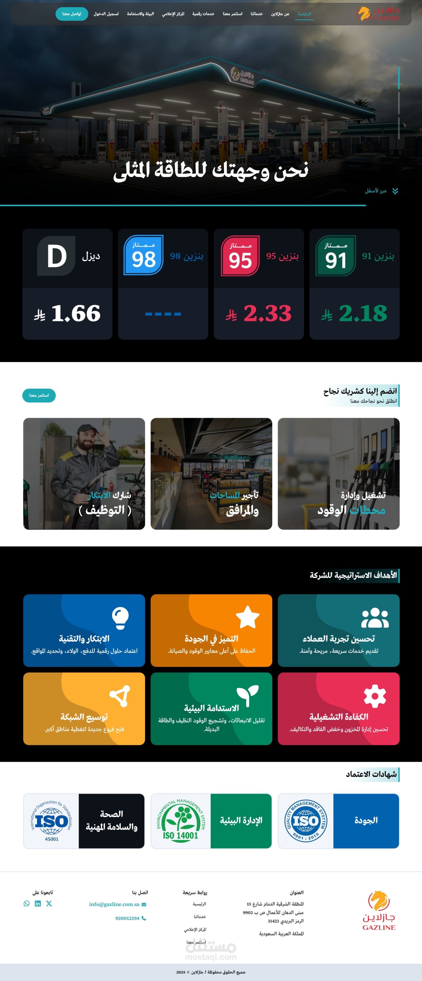 تم تصميم UI وبرمجة موقع Gazline بالكامل ليكون منصة احترافية متكاملة تعرّف بخدمات الشركة في مجال محطات الوقود، بأسلوب عصري يعكس هوية الشركة ويعزز حضورها الرقمي.