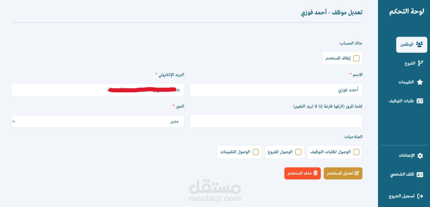 × نظام إدارة للموظفين والإداريين بصلاحيات مرنة تتيح التحكم في الأقسام المعروضة لكل مستخدم بحسب دوره.
