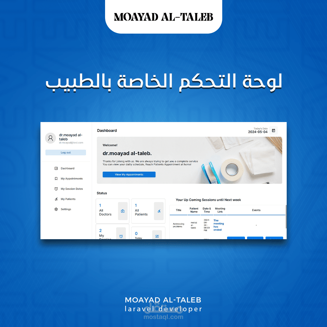 - الطبيب يدير جلساته ومواعيده وحسابه الشخصي.