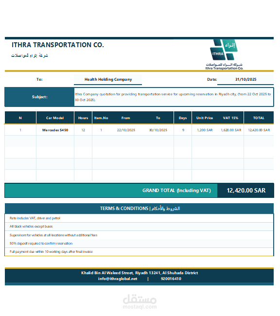 شركة Ithraa للنقل الفاخر (الرياض) تدير أسطول نقل VIP (سيارات فاخرة + حافلات):