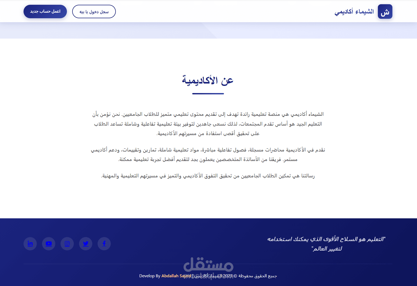 الهدف من المشروع هو بناء نظام أكاديمي شامل يجمع بين الجمال والوظيفة، يخدم الطلاب والأساتذة في بيئة رقمية احترافية.