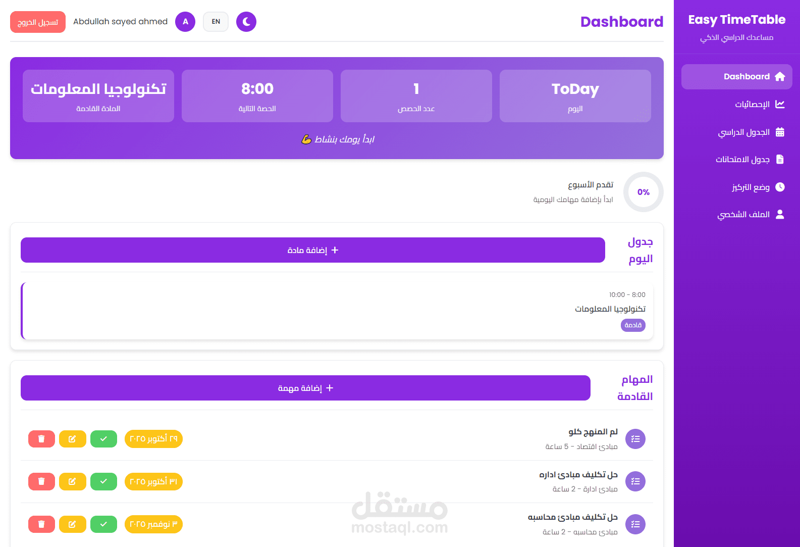 Easy TimeTable هي منصة ويب متكاملة (Full Stack) تم تطويرها لتسهيل عملية إنشاء وإدارة الجداول الدراسية إلكترونيًا.