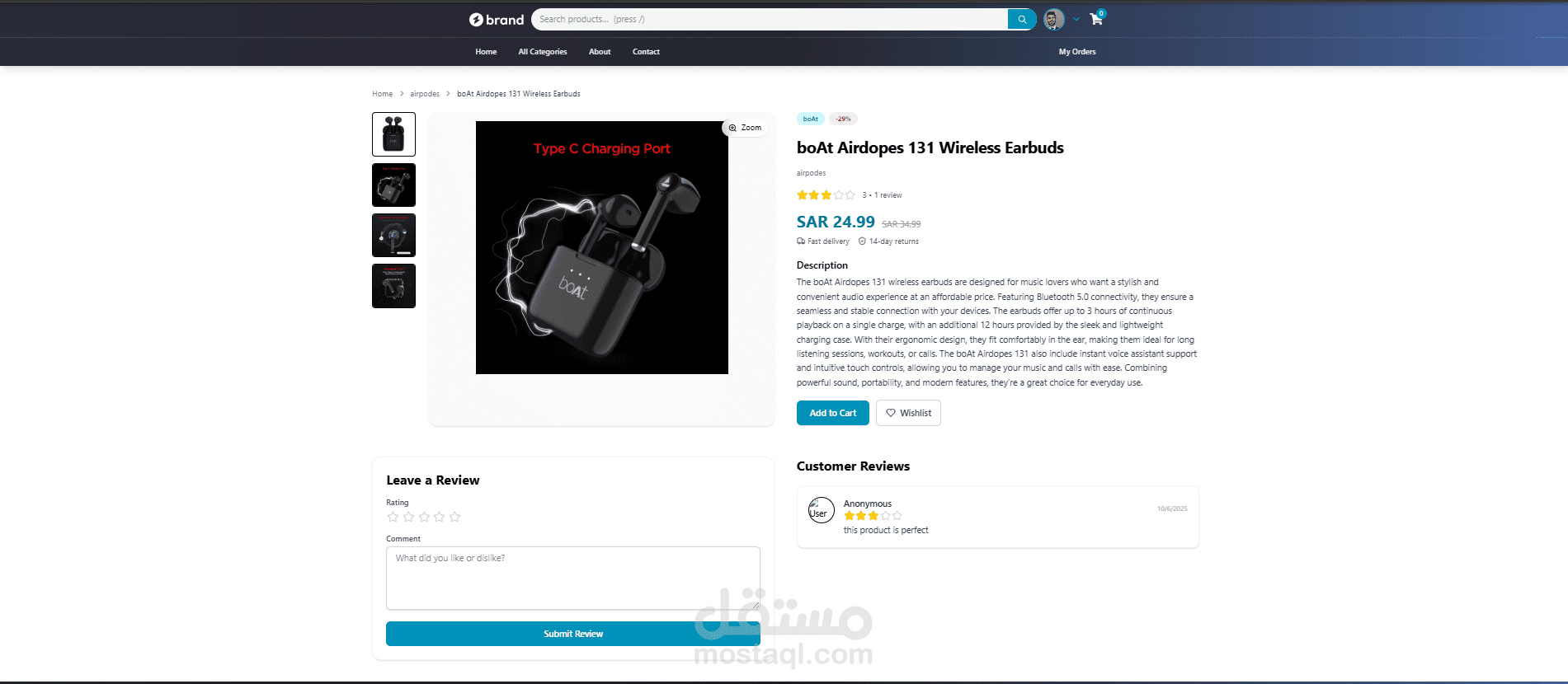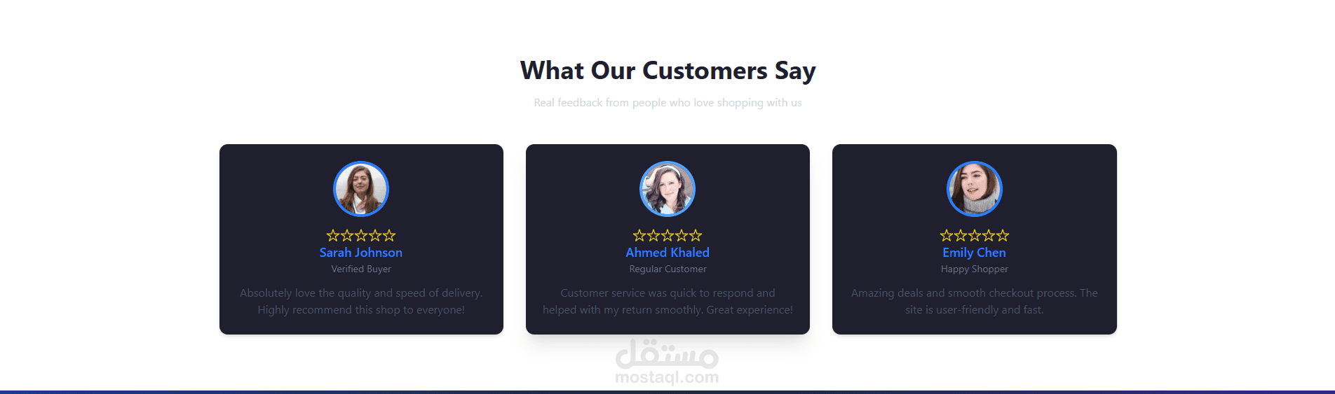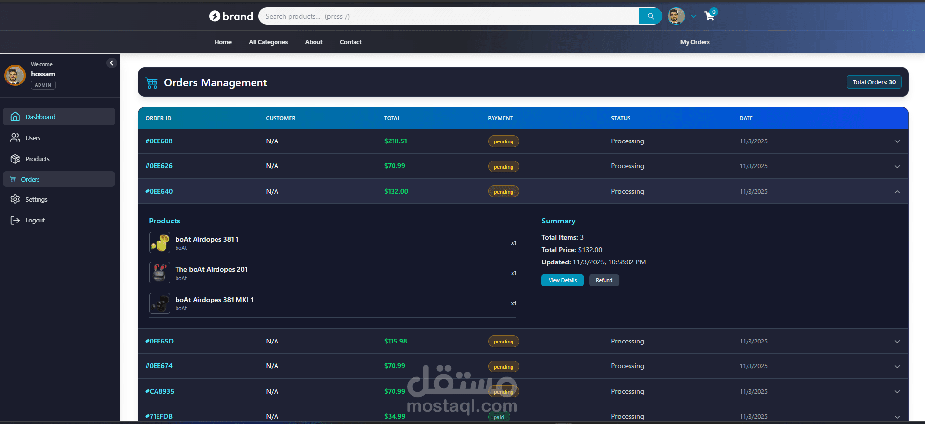 قمت بتطوير تطبيق ويب متكامل للتجارة الإلكترونية باستخدام MERN Stack (MongoDB, Express.js, React.js, Node.js) مع تركيز كبير على تصميم واجهة وتجربة مستخدم عصرية وسلسة.