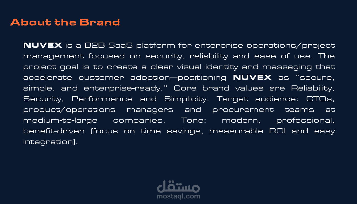 NUVEX هي منصة SaaS موجهة للأعمال (B2B)، متخصصة في إدارة عمليات الشركات والمشاريع، مع تركيز قوي على الأمان، الموثوقية وسهولة الاستخدام.