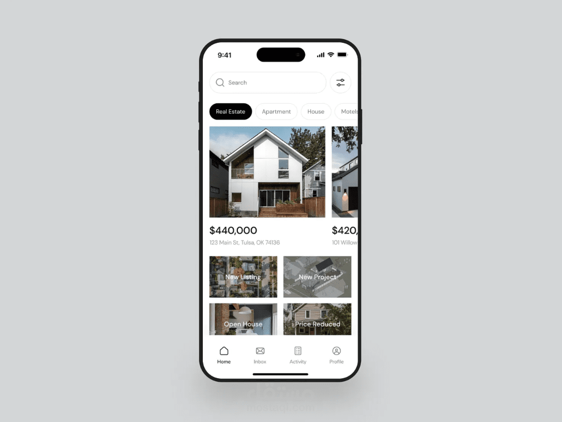 تطبيق Real Estate حديث ومتطور تم بناؤه باستخدام Flutter لتقديم تجربة تصفح وشراء أو تأجير العقارات بسهولة وسلاسة على Android و iOS.