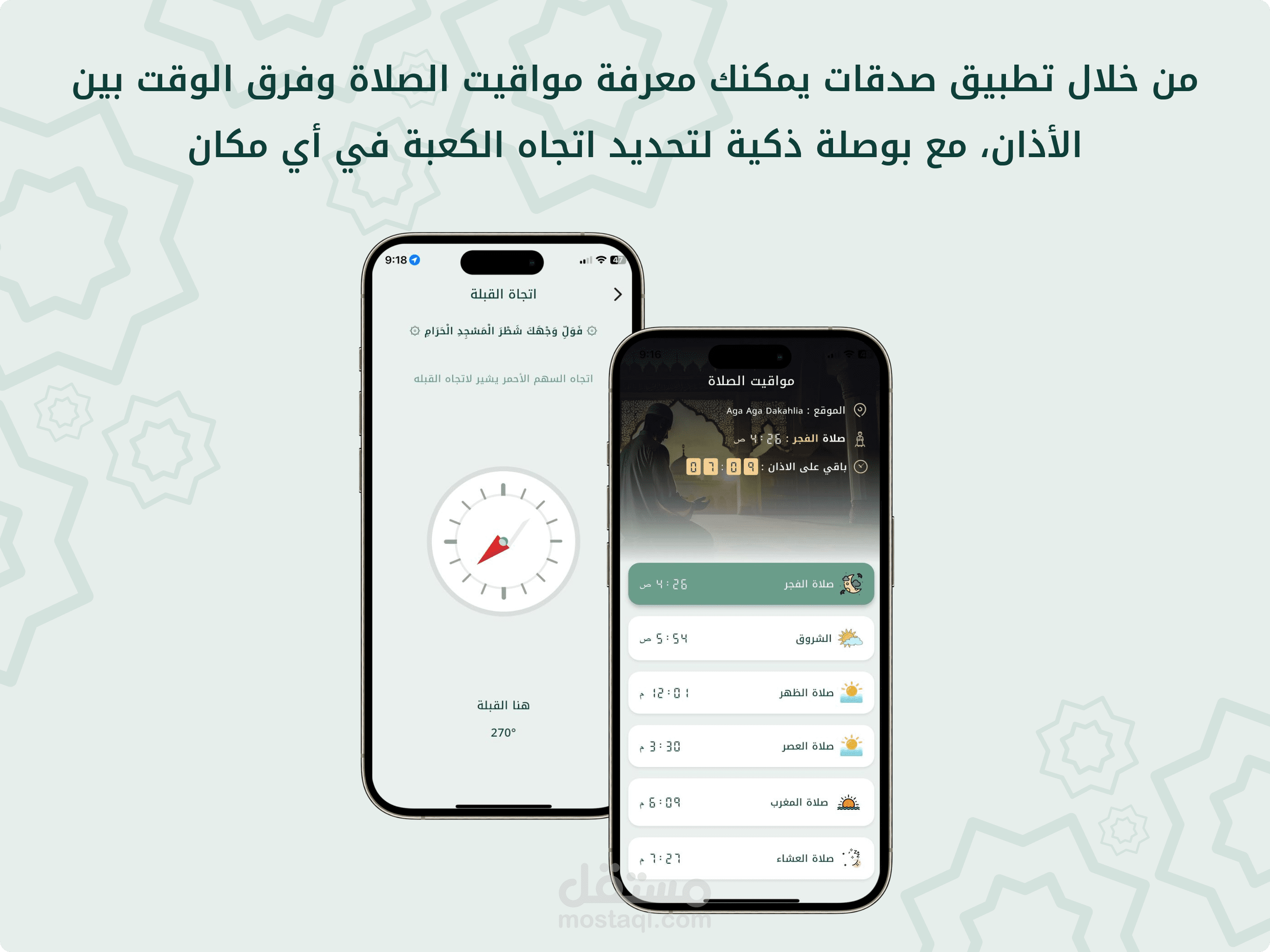 - عرض مواقيت الصلاة وفقًا للموقع الجغرافي للمستخدم.