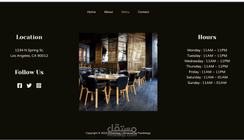Foodology هو موقع إلكتروني مصمّم لتقديم تجربة طعام مميزة عبر الإنترنت — من خلال قائمة طعام واضحة، تصميم جذّاب، وتصفح سلس على كل الأجهزة.