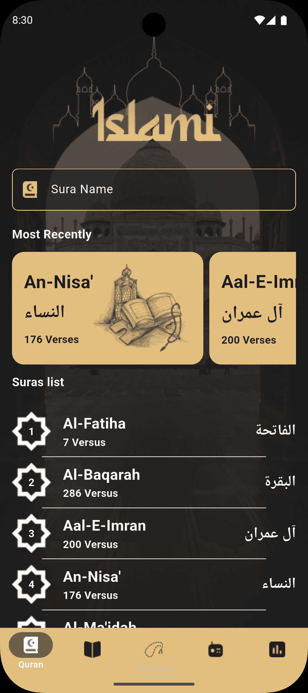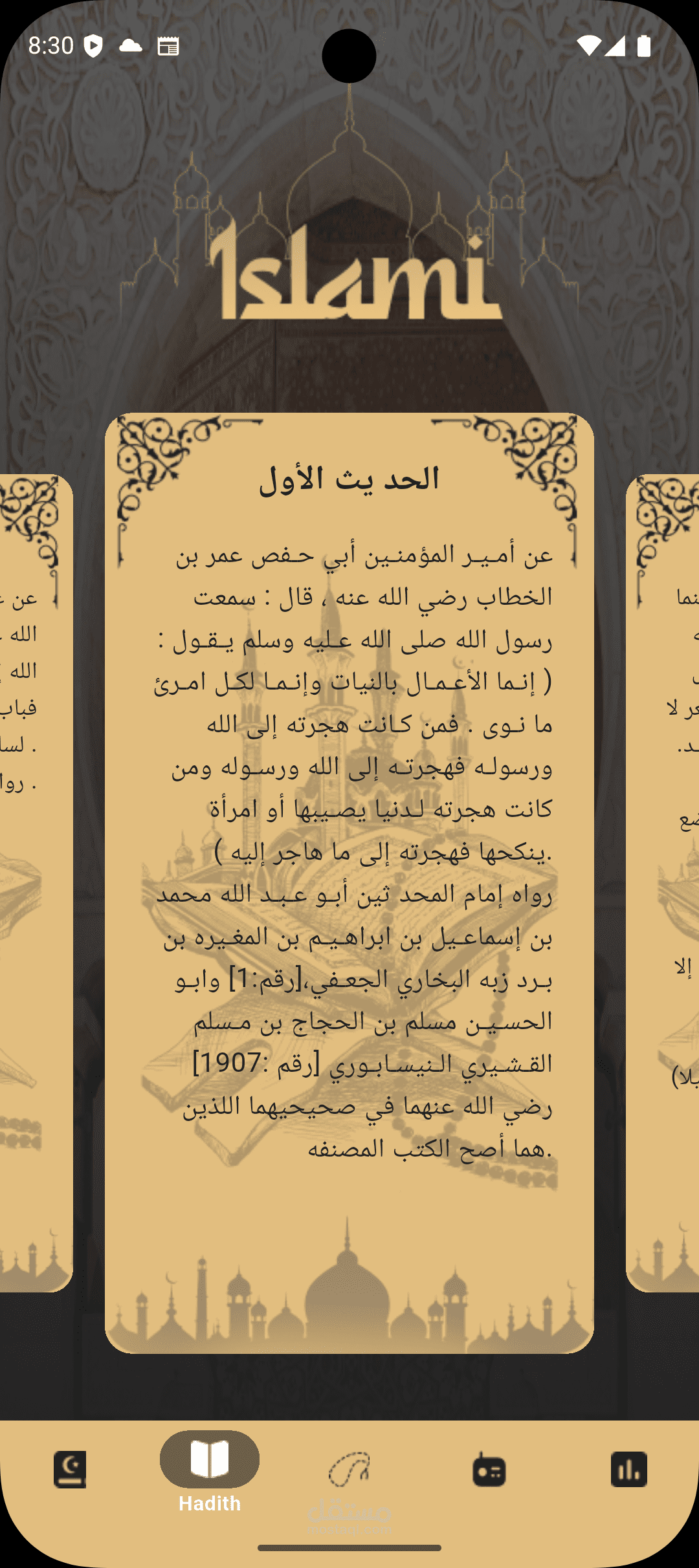 تطبيق إسلامي شامل يحتوي على القرآن الكريم، الأحاديث، أوقات الصلاة، الراديو المباشر، ودعم تعدد اللغات.