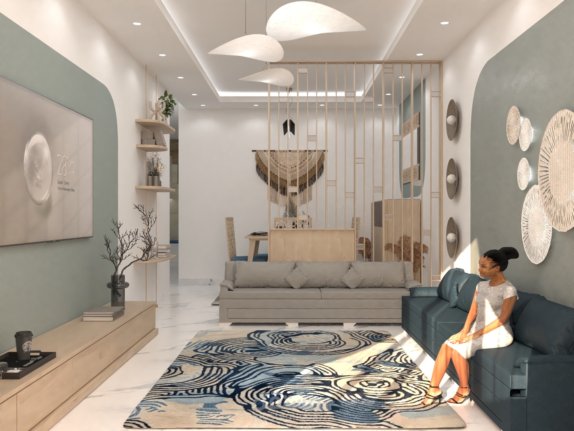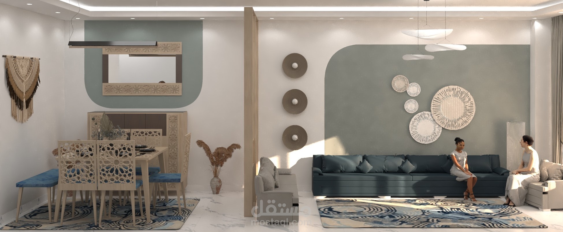 الفرش من اختيار العميل تم تصميم الديكورات