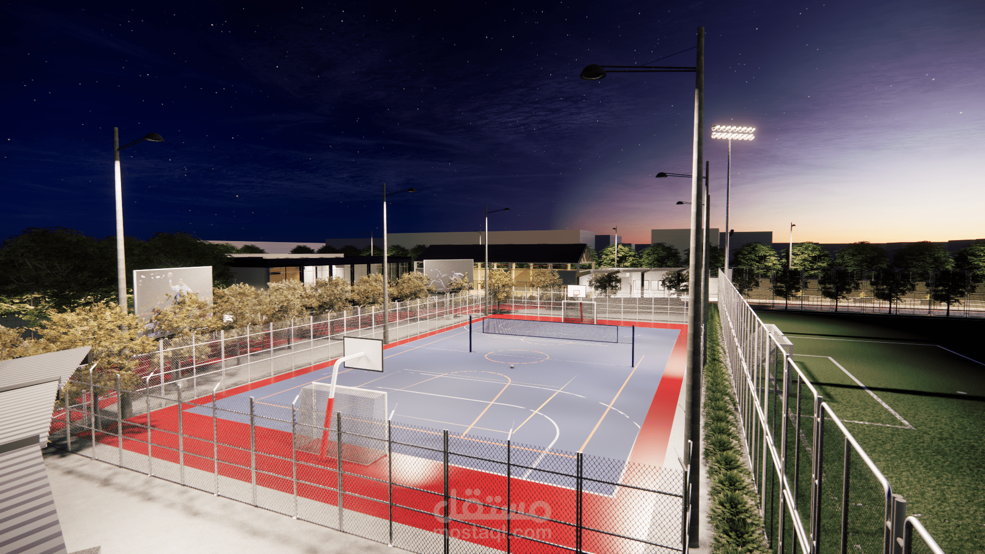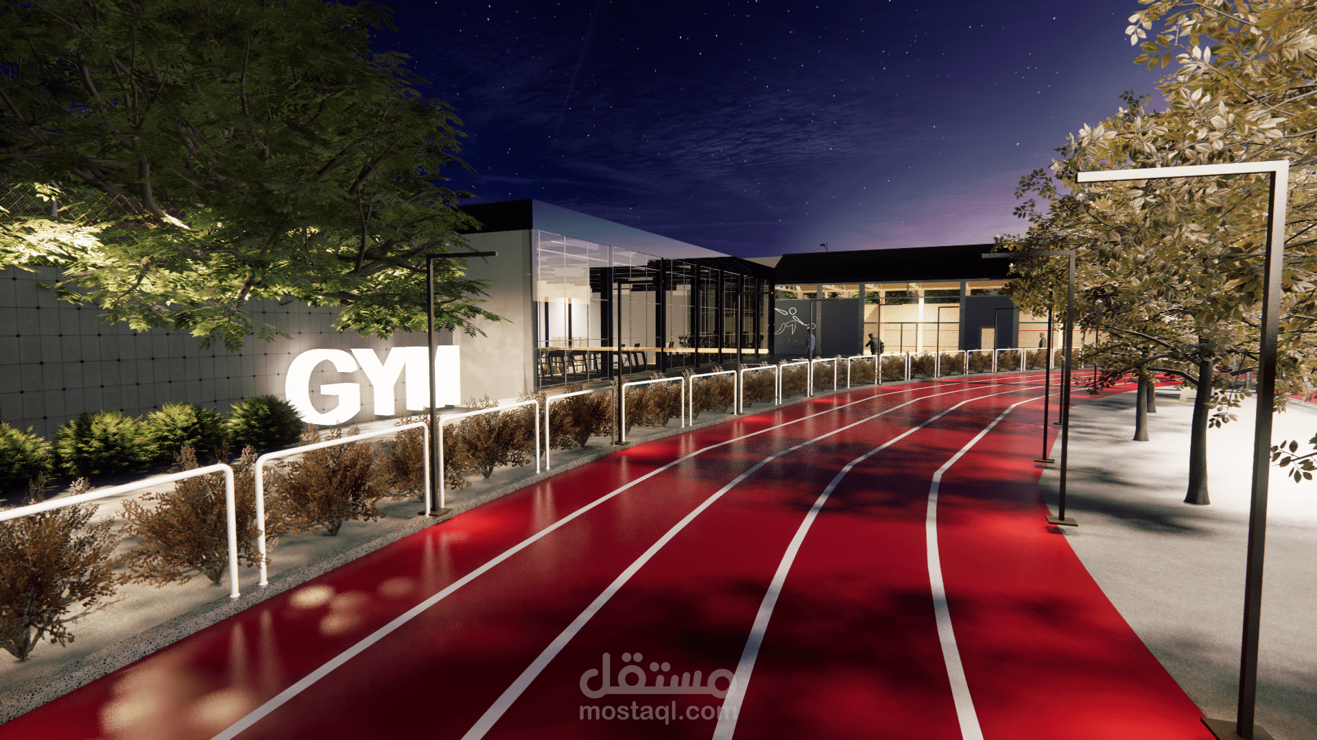 مشروع تصميم مجمع رياضي متكامل (3D Renders)