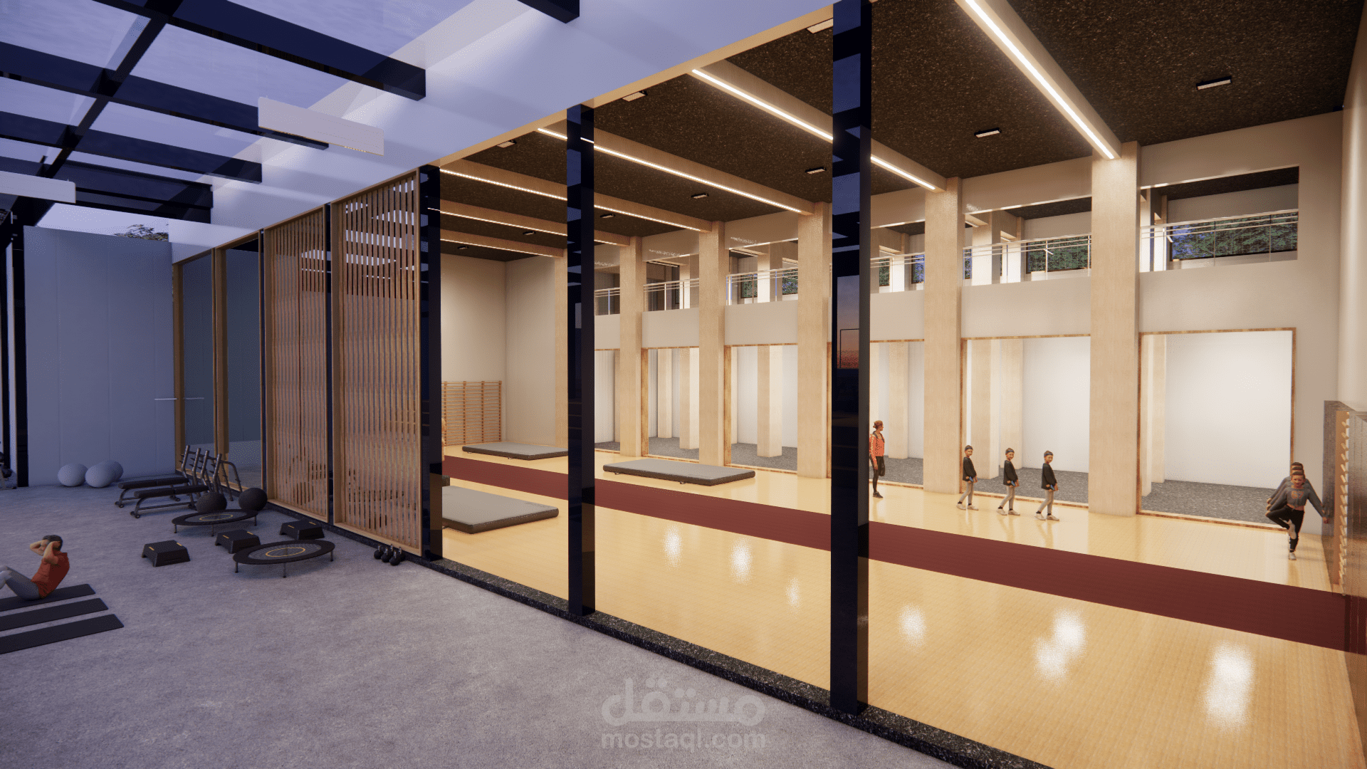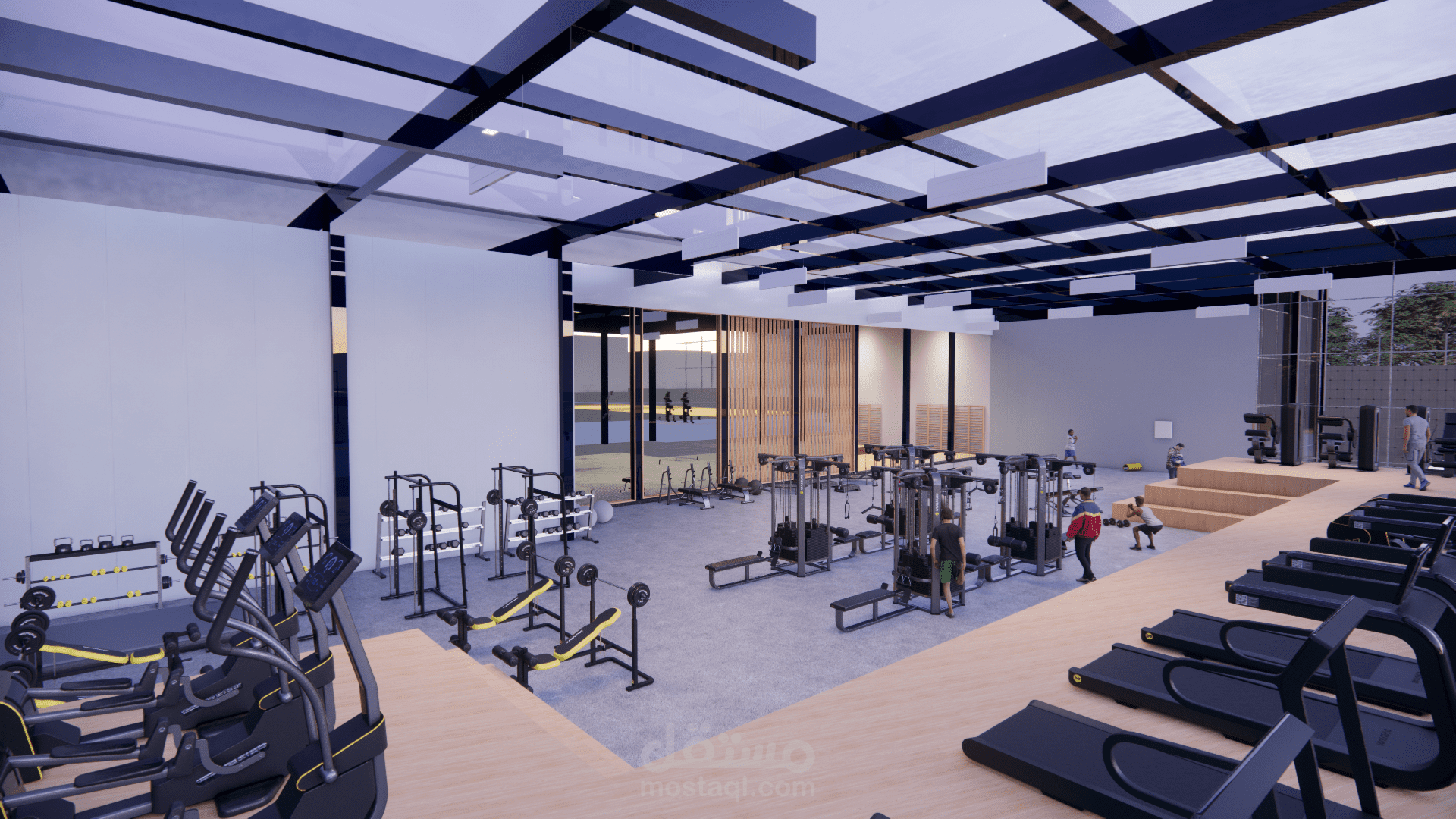 صالة رياضية (GYM): تصميم عصري بواجهات زجاجية.