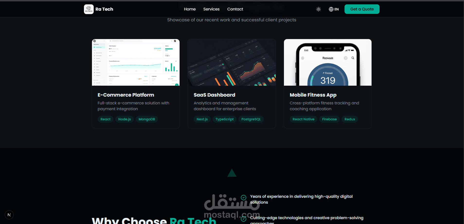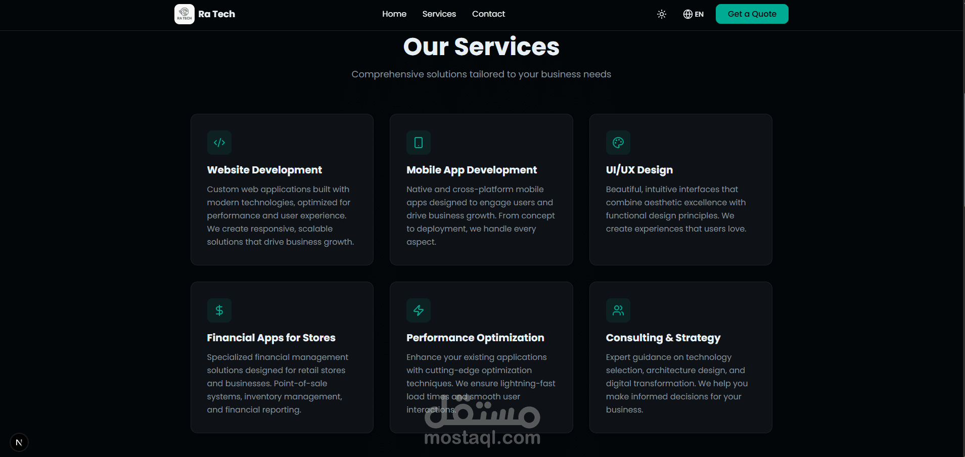 تم التركيز على الأداء، التجاوب الكامل مع مختلف الأجهزة، وتجربة مستخدم احترافية تعكس هوية شركة تقنية راقية.