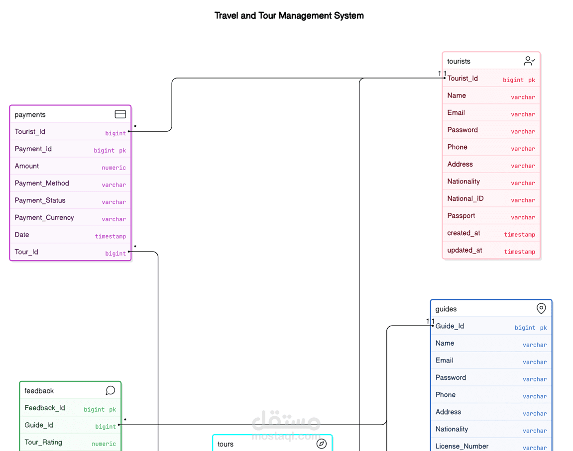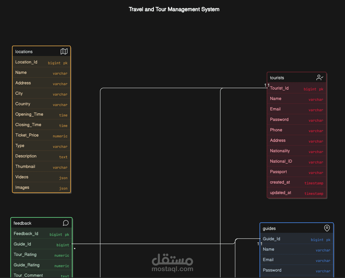 يوفر النظام واجهة خلفية قوية وقابلة للتوسع لأي مشروع أو منصة متعلقة بالسياحة، حيث يقوم بتنظيم العمليات الخاصة بالحجوزات، التقييمات، توزيع المرشدين، وإدارة الوجهات السياحية بشكل متكامل وسهل الدمج.