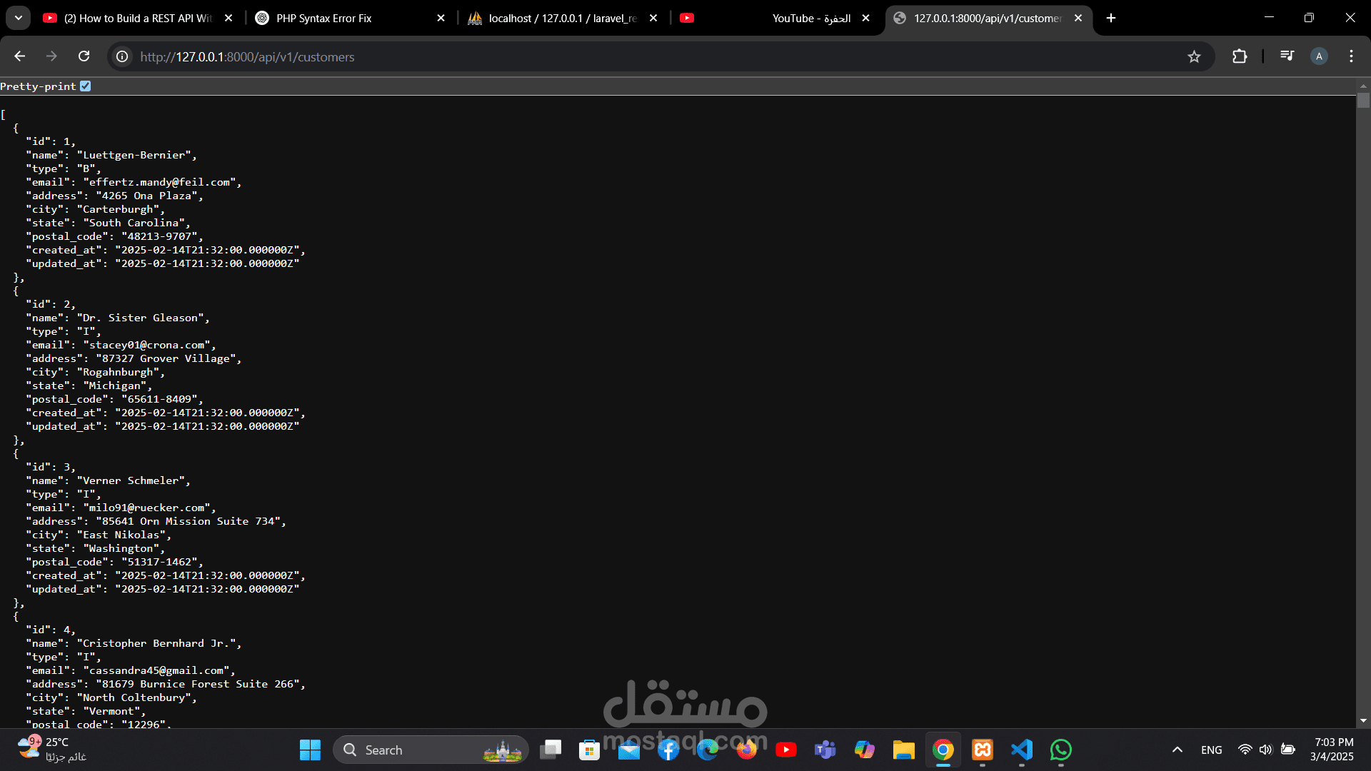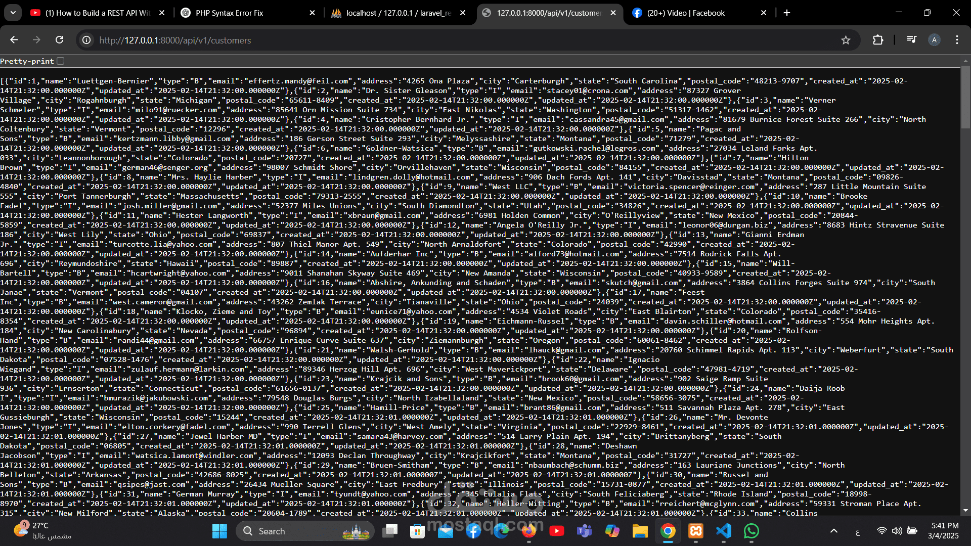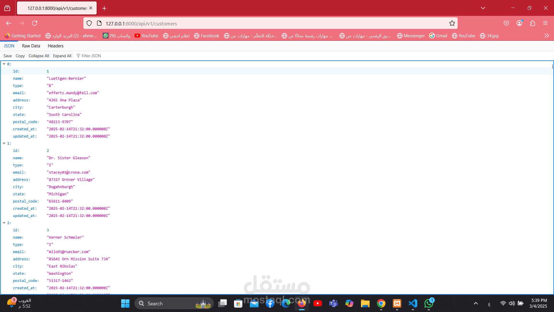مشروع واجهة برمجة تطبيقات (RESTful API) تم تطويره باستخدام Laravel Framework لإدارة بيانات العملاء والفواتير بطريقة احترافية ومنظمة.