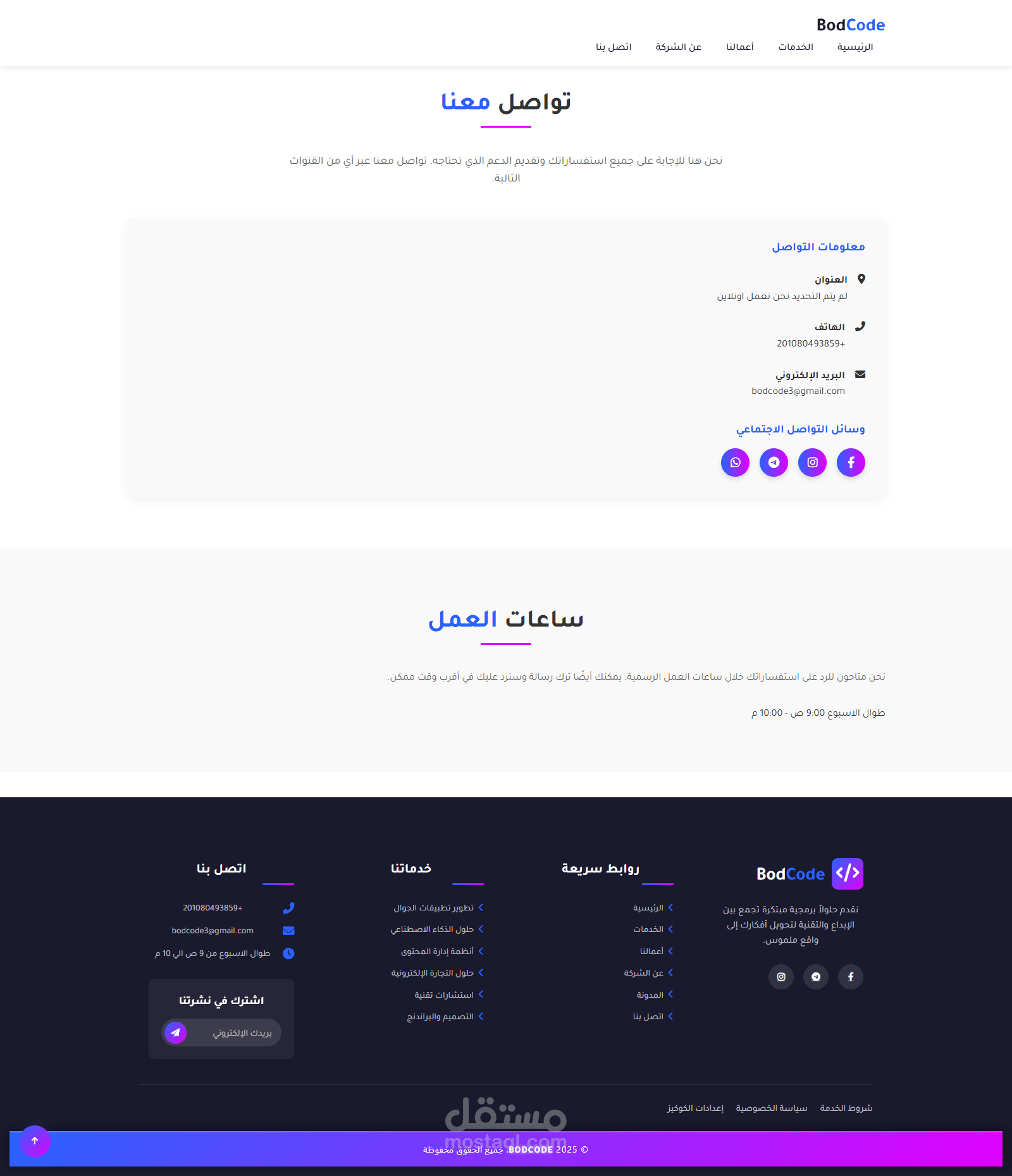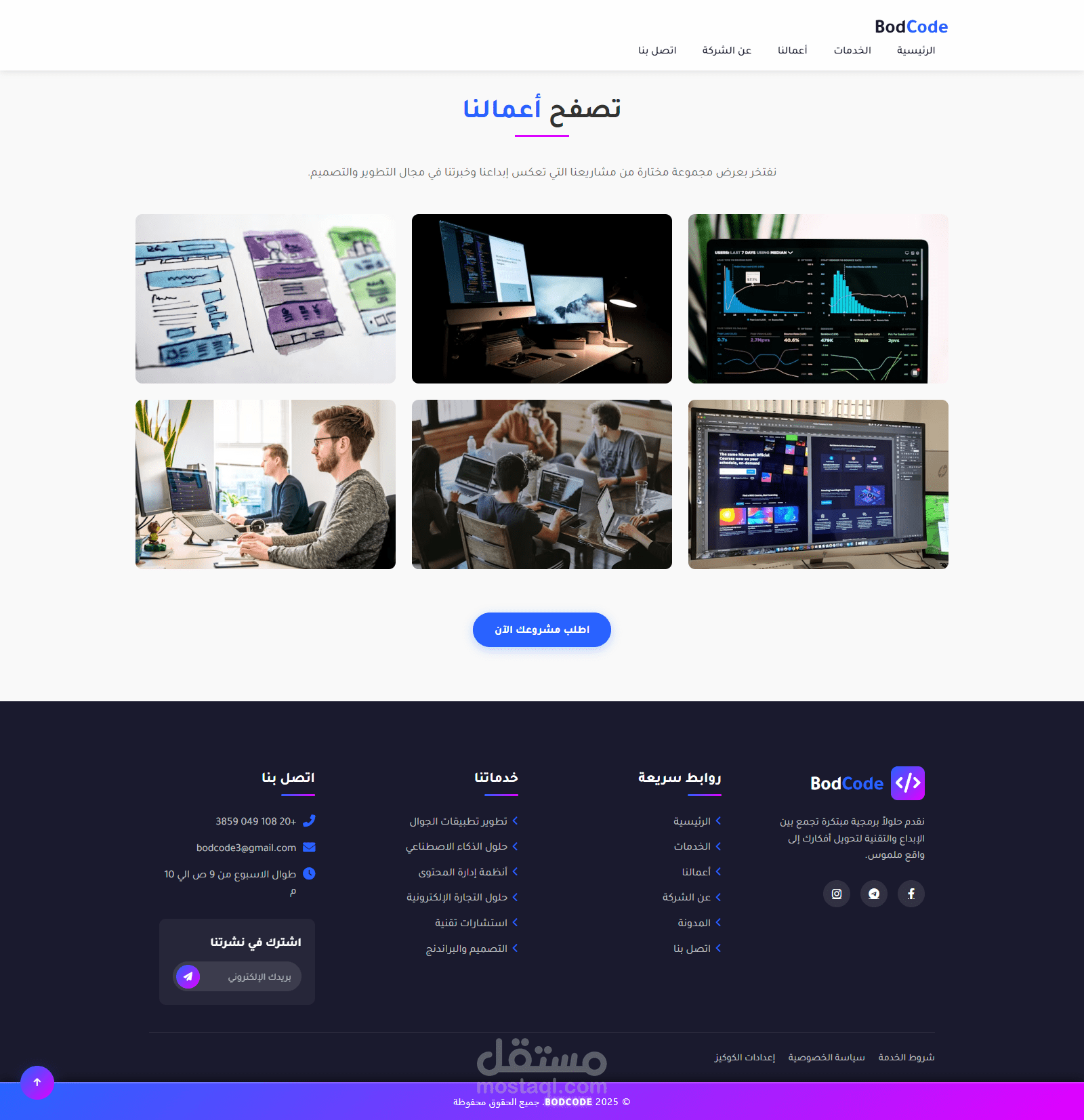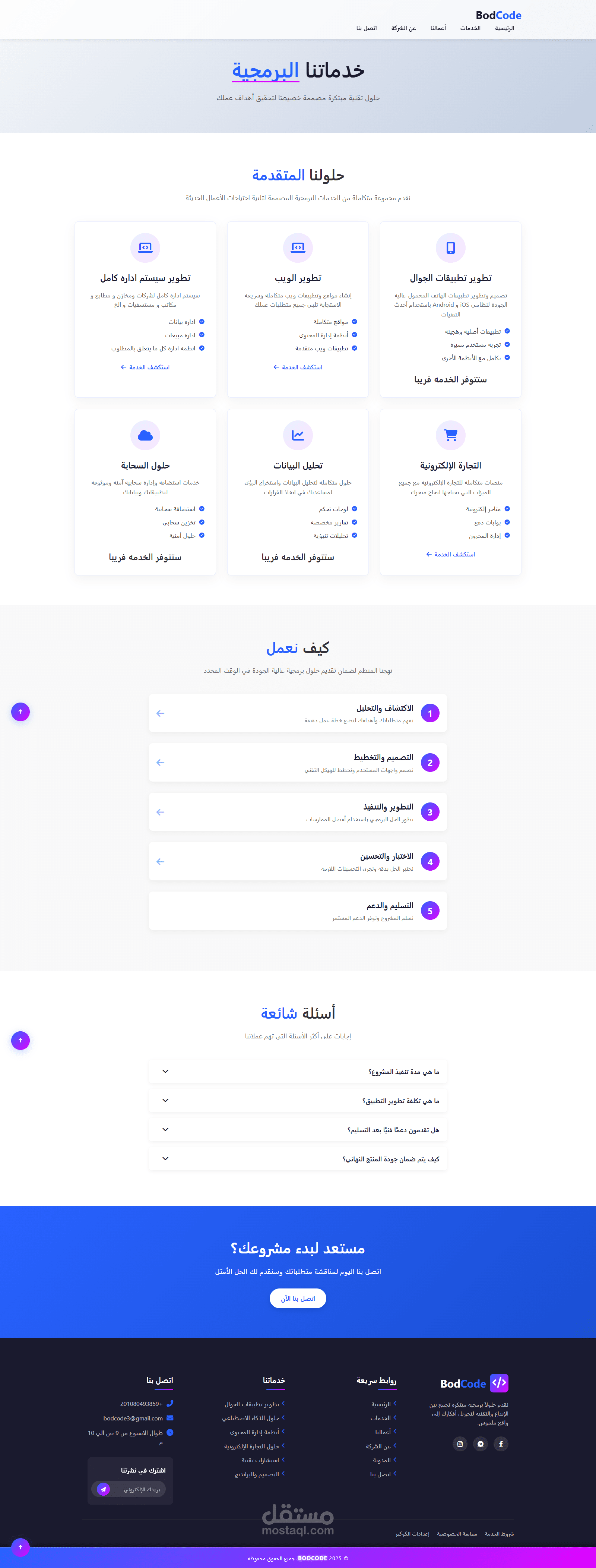 موقع احترافي متكامل مخصص لشركات البرمجة أو الخدمات الرقمية، مصمم بتقنيات حديثة وتصميم أنيق متجاوب مع جميع الشاشات.
