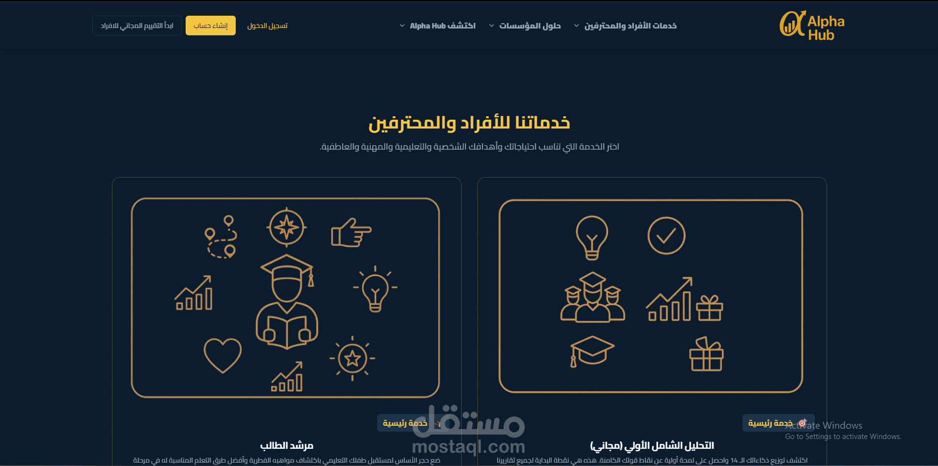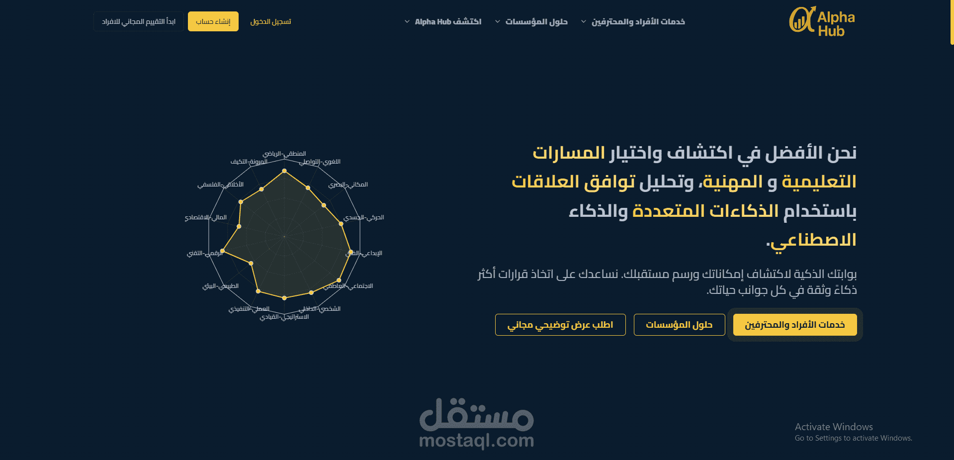 باختصار، Alpha Hub هي بوابتك الذكية لاكتشاف إمكاناتك، وفهم نوع ذكائك، واتخاذ قرارات أكثر دقة وثقة في حياتك التعليمية والمهنية.