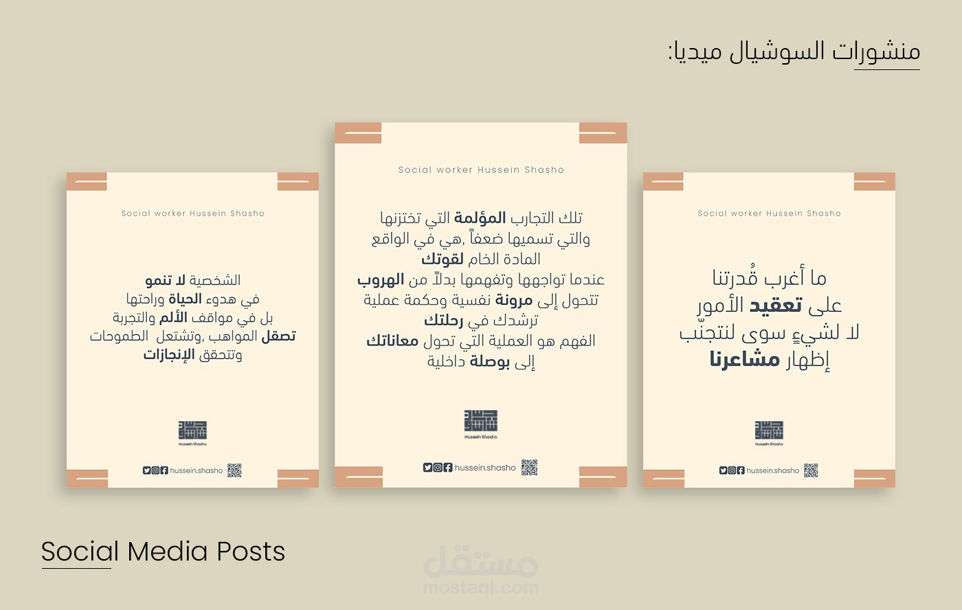 تصميم هوية بصرية متكاملة للأستاذ حسين شاشو، تعكس الاحترافية والثقة والعصرية