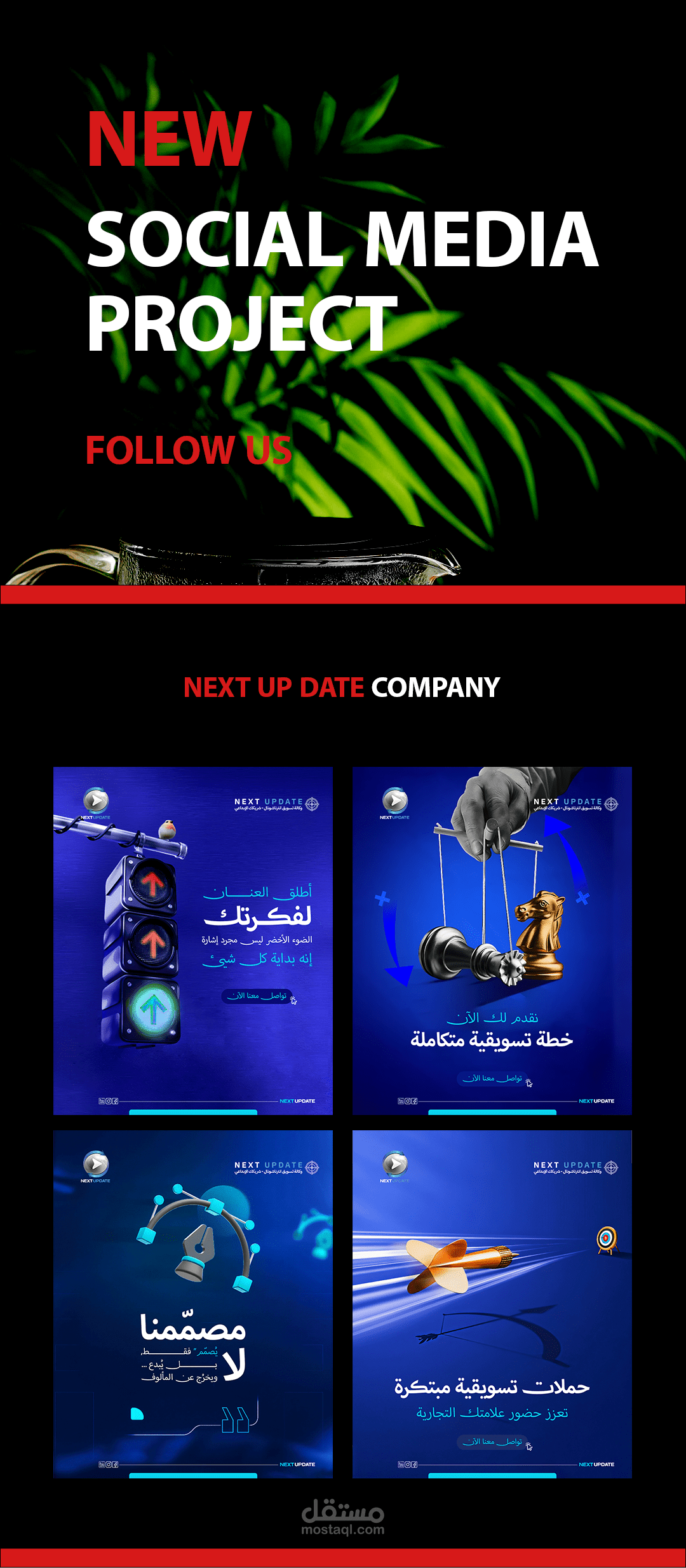 "متخصصون في التصميم الجرافيكي الاحترافي وتصاميم السوشيال ميديا المبتكرة. نقدم حلولاً بصرية متكاملة تشمل تصميم منشورات إنستغرام، تصاميم فيسبوك إعلانية، وقوالب متناسقة لتويتر ولينكد إن. أعمالنا تركز على الإبداع البصري، الاحترافية في التنفيذ، وتحقيق أهداف التسويق الرقمي. إذا كنت تبحث عن مصمم جرافيك ديزاين محترف، أو تحتاج إلى تصاميم سوشيال ميديا جذابة ومؤثرة، أو مصمم جرافيك لإنشاء محتوى مرئي قوي للعلامة التجارية، يمكنك استعراض هذا العمل. نقدم تصاميم جرافيك متقنة تضمن التفاعل، وتزيد الوعي بالعلامة التجارية."