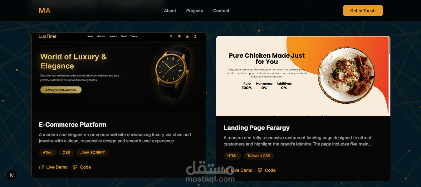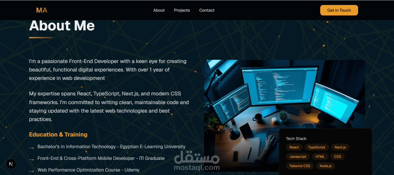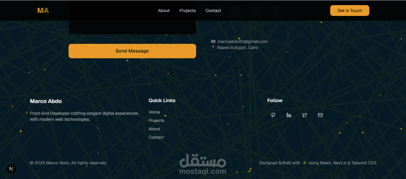 هذا المشروع هو موقع بورتفوليو شخصي تم تطويره باستخدام Next.js و Tailwind CSS لتقديم تجربة سلسة وسريعة مع تصميم عصري ومتجاوب على جميع الأجهزة.