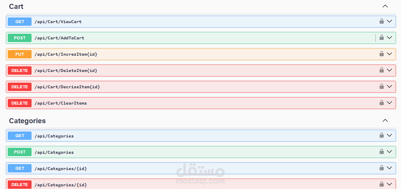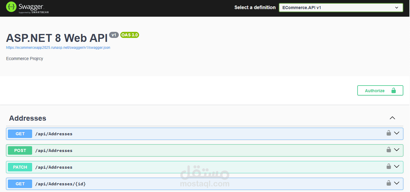 تم تطوير واجهة برمجة تطبيقات متكاملة لنظام تجارة إلكترونية باستخدام ASP NET Core، وفقًا لمبادئ Clean Architecture لضمان فصل المهام وسهولة التوسع.