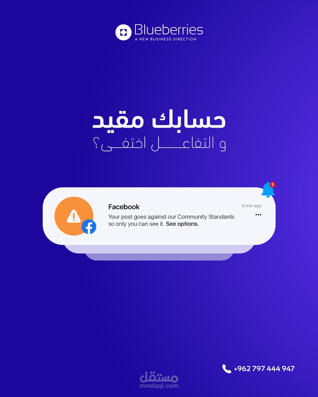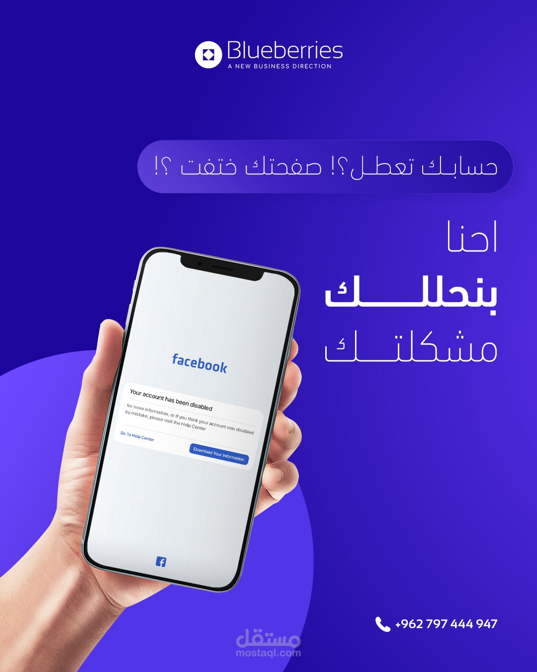 The visuals highlight the agency’s services — page support, verification, issue-solving, and complete account management — through modern, dynamic, and brand-driven designs.