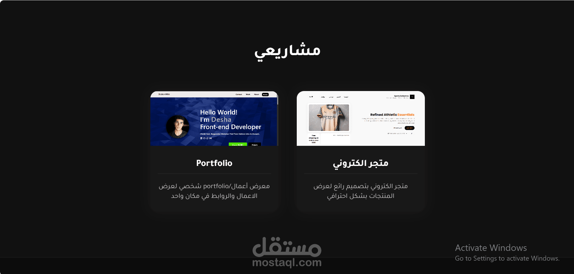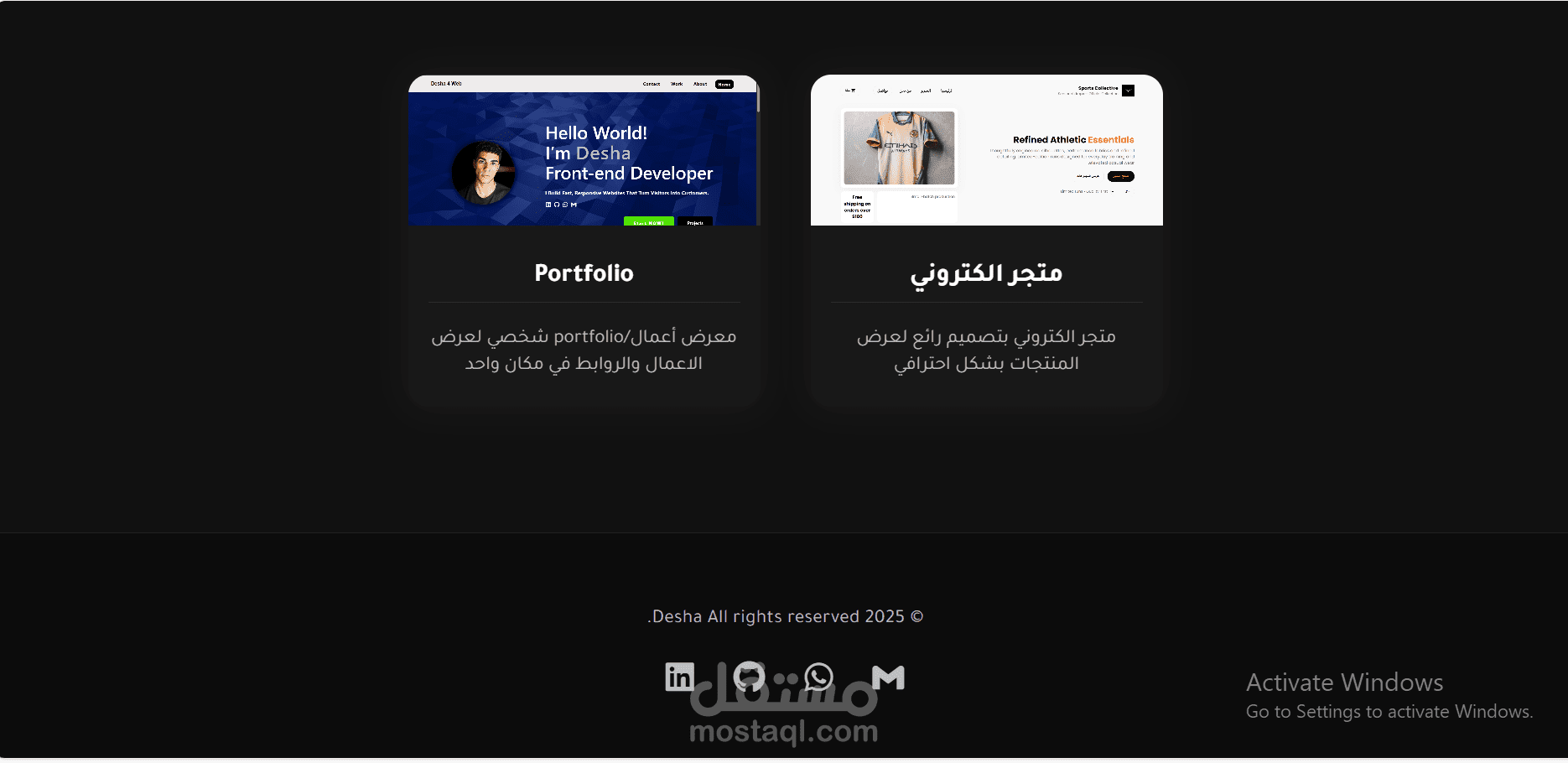 ـــــــ ركزت علي الهوية بشكل كبير، انه يظهر الهوية الخاصة بصحاب البورتفوليو كمبرمج مواقع.
