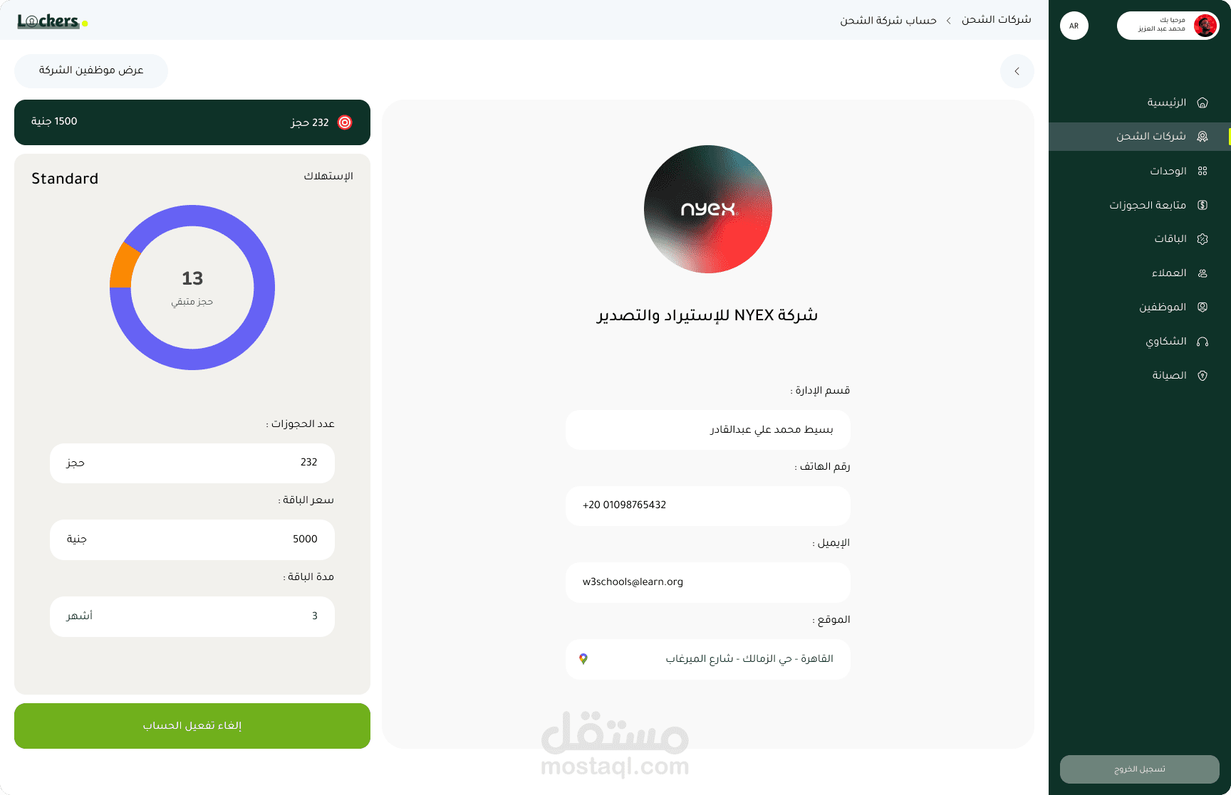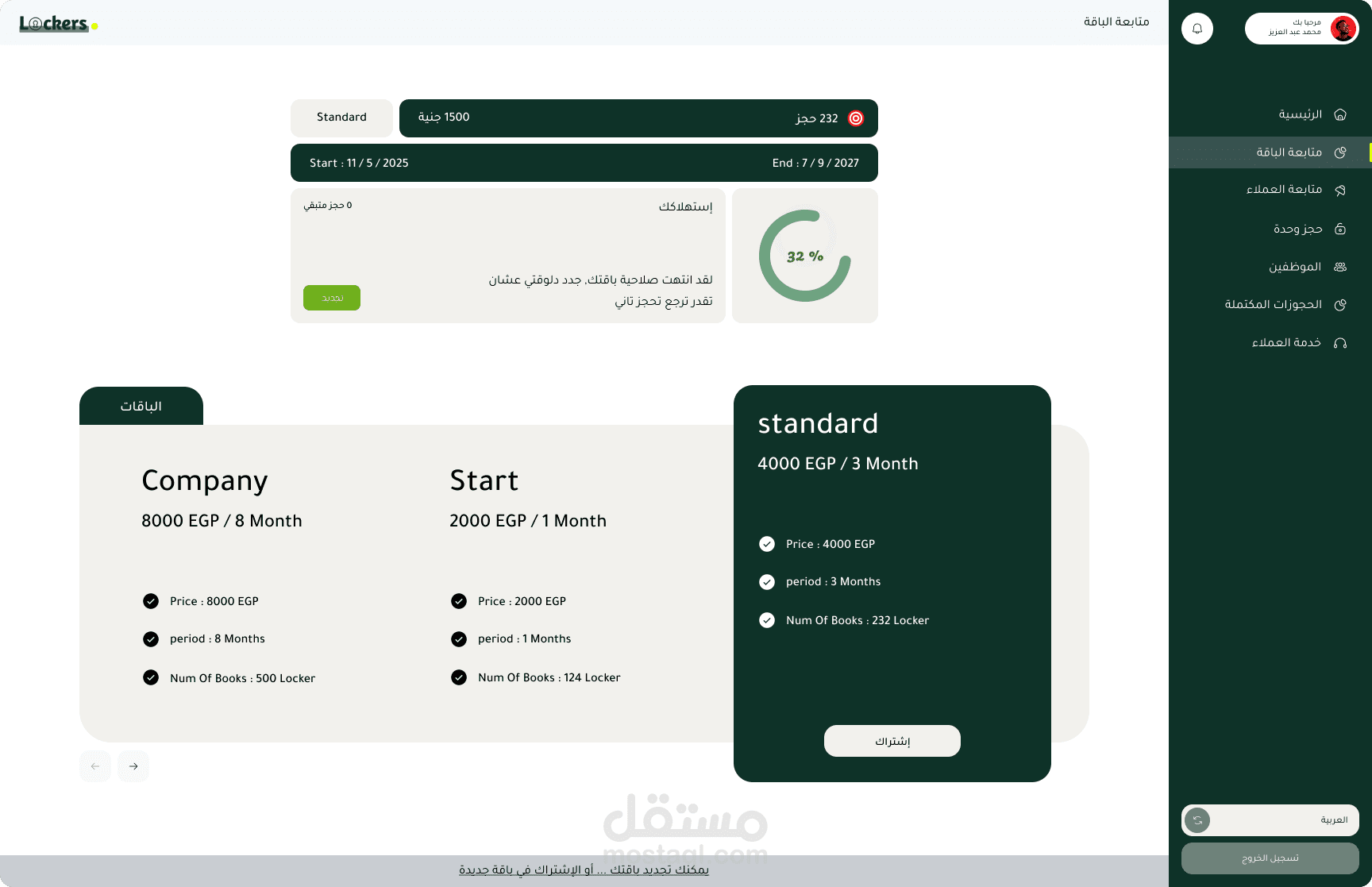 نظام ذكي لإدارة الأقفال المؤمنة لتخزين واستلام الأغراض الخاصة بسهولة وأمان. يتيح للمستخدمين الدفع عبر التطبيق لفتح الأقفال واستلام محتوياتهم، كما يدعم شركات الشحن وموظفيها لإيداع الطلبات داخل الأقفال. النظام مزوّد بلوحة تحكم لإدارة الأقفال، الطلبات، الاشتراكات، والمدفوعات، مع تقارير دقيقة لضمان سير العمل بكفاءة عالية.