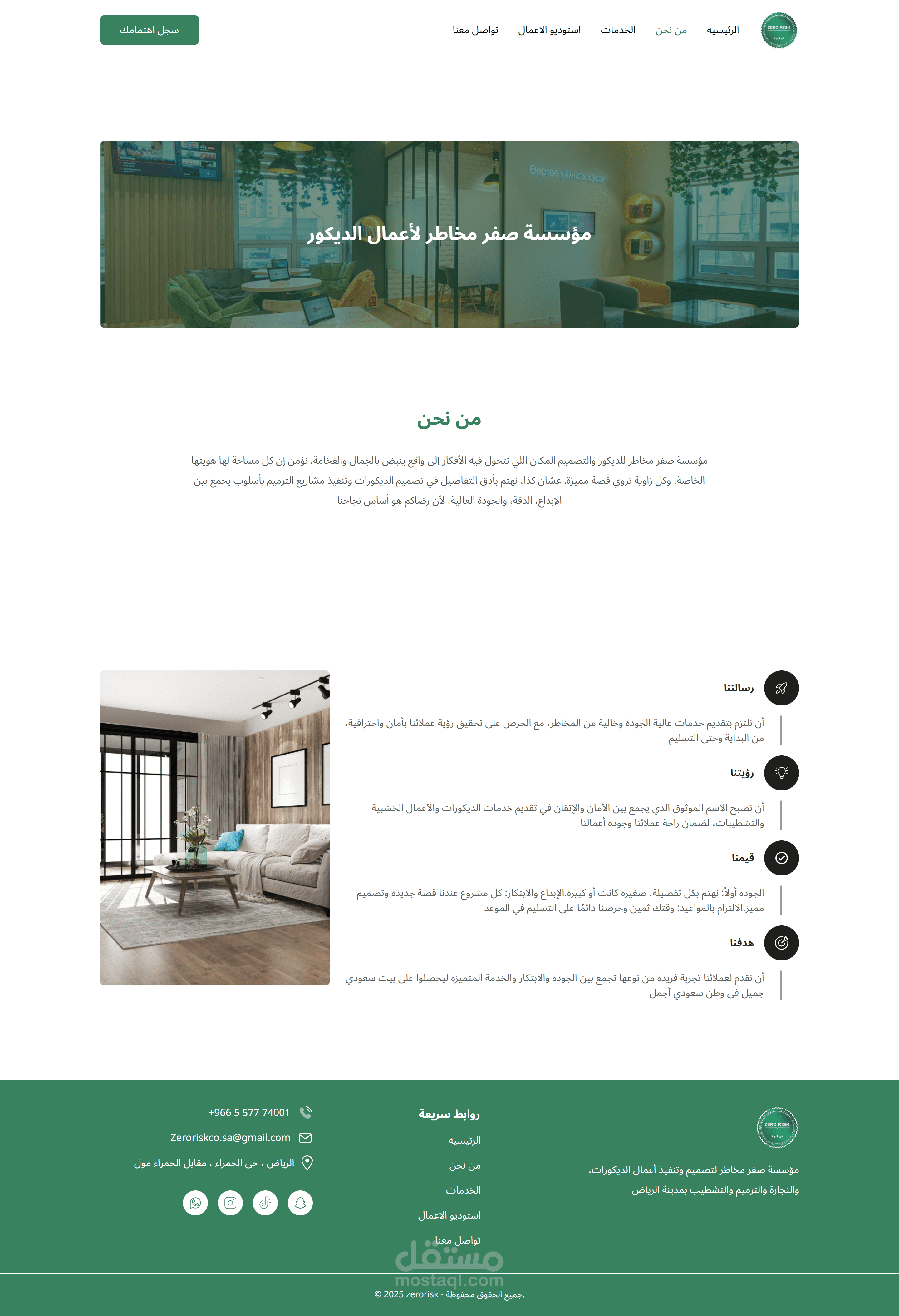 موقع رسمي لمؤسسة صفر مخاطر للتجارة في مدينة الرياض، المتخصصة في تصميم وتنفيذ أعمال الديكورات، النجارة، الترميم، والتشطيب.