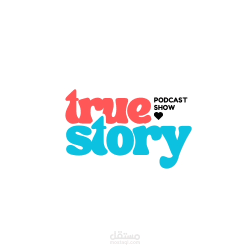 شعار “True Story” يحمل طابعًا ودودًا وبسيطًا يعكس محتوى بودكاست قصصي إنساني وعفوي، مع توازن بين الجدية والمرح في الأسلوب الطباعي والألوان.