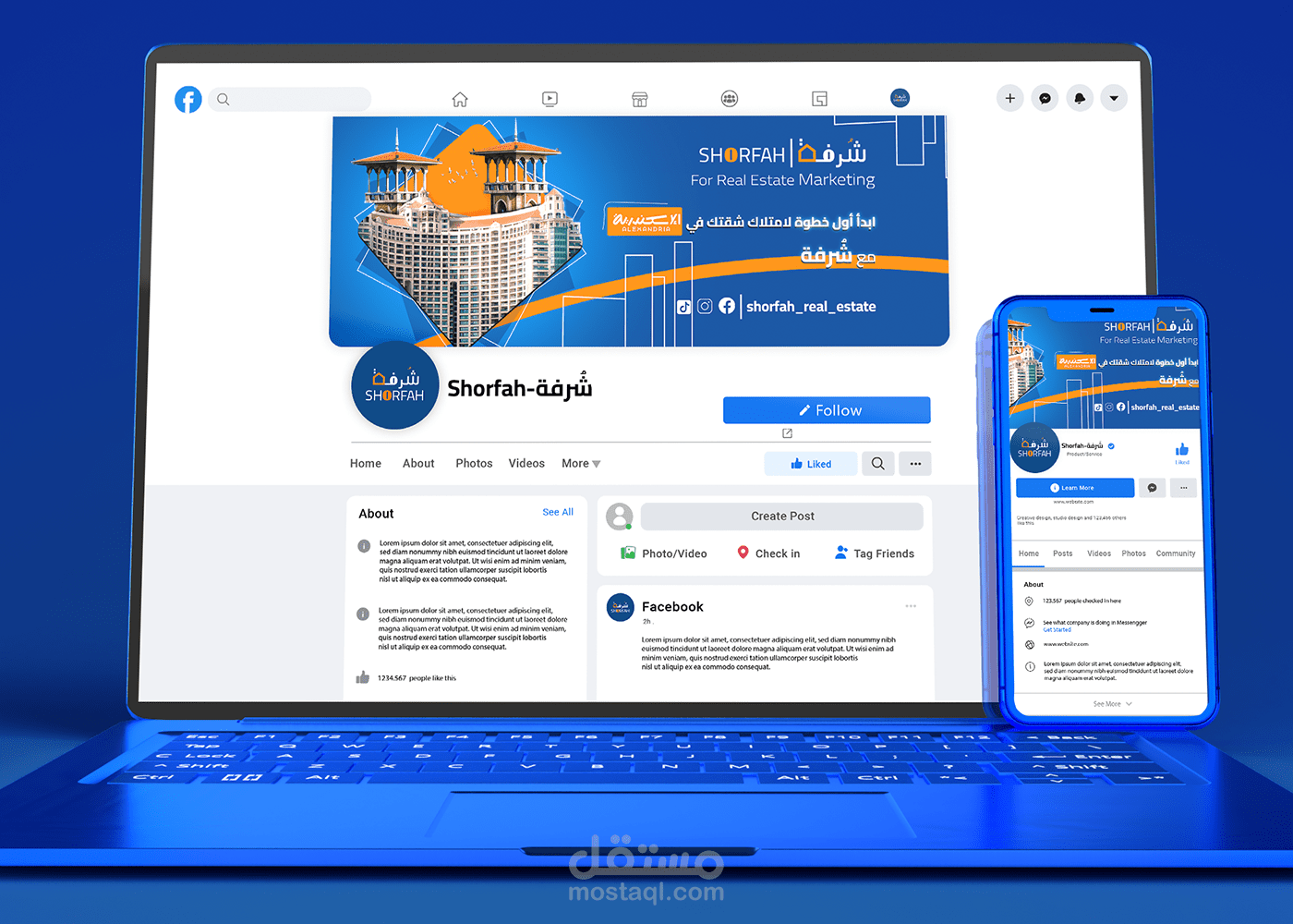 تصميم غلاف صفحة "شرفة | SHORFAH" للتسويق العقاري